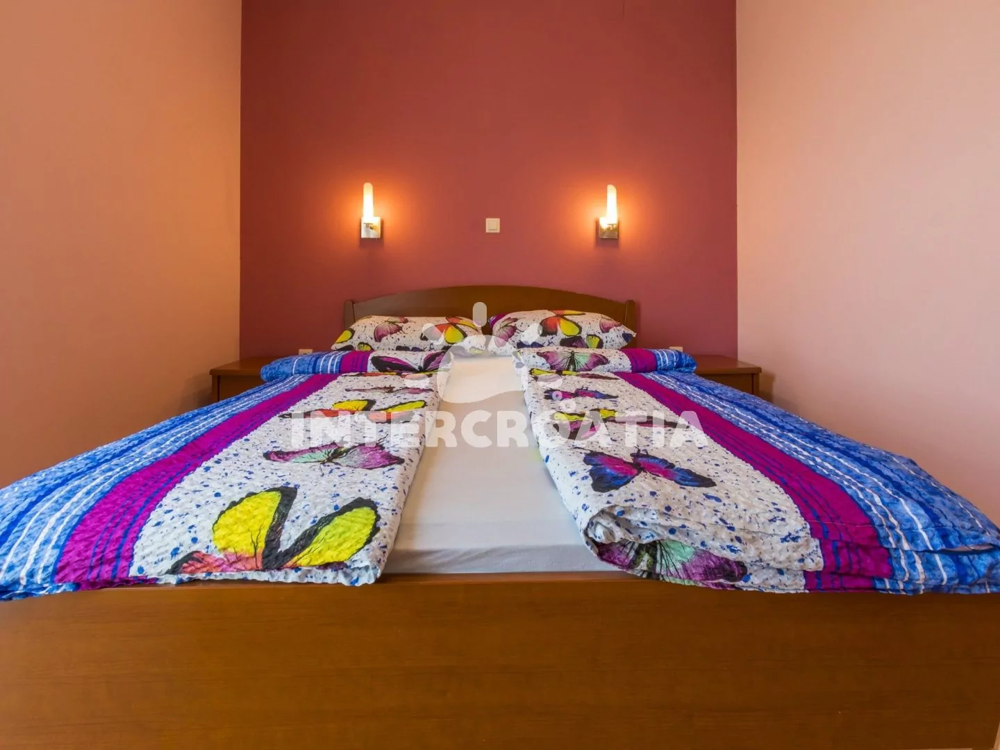 Dobře vybavený apartmánový dům s výhledem na moře a lodžiemi s venkovním posezením. Dům se nachází v oblíbené části města Crikvenica, s dobrou dostupností k moři. Pod domem velká garáž pro automobily.