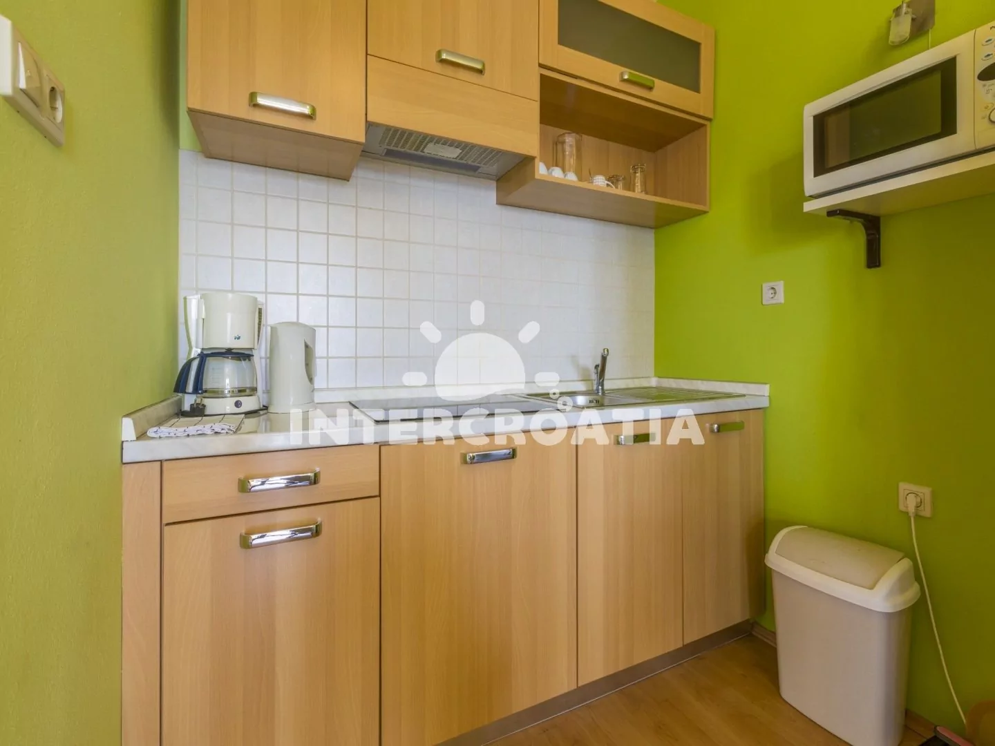 Moderně zařízený apartmán (60 m2), s vlastní terasou a výhledem na moře. Apartmán se nachází v 2. patře domu a je vhodný pro 4 až 5 osob. Obývací pokoj je spojený s kuchyní. Kuchyňská linka je…