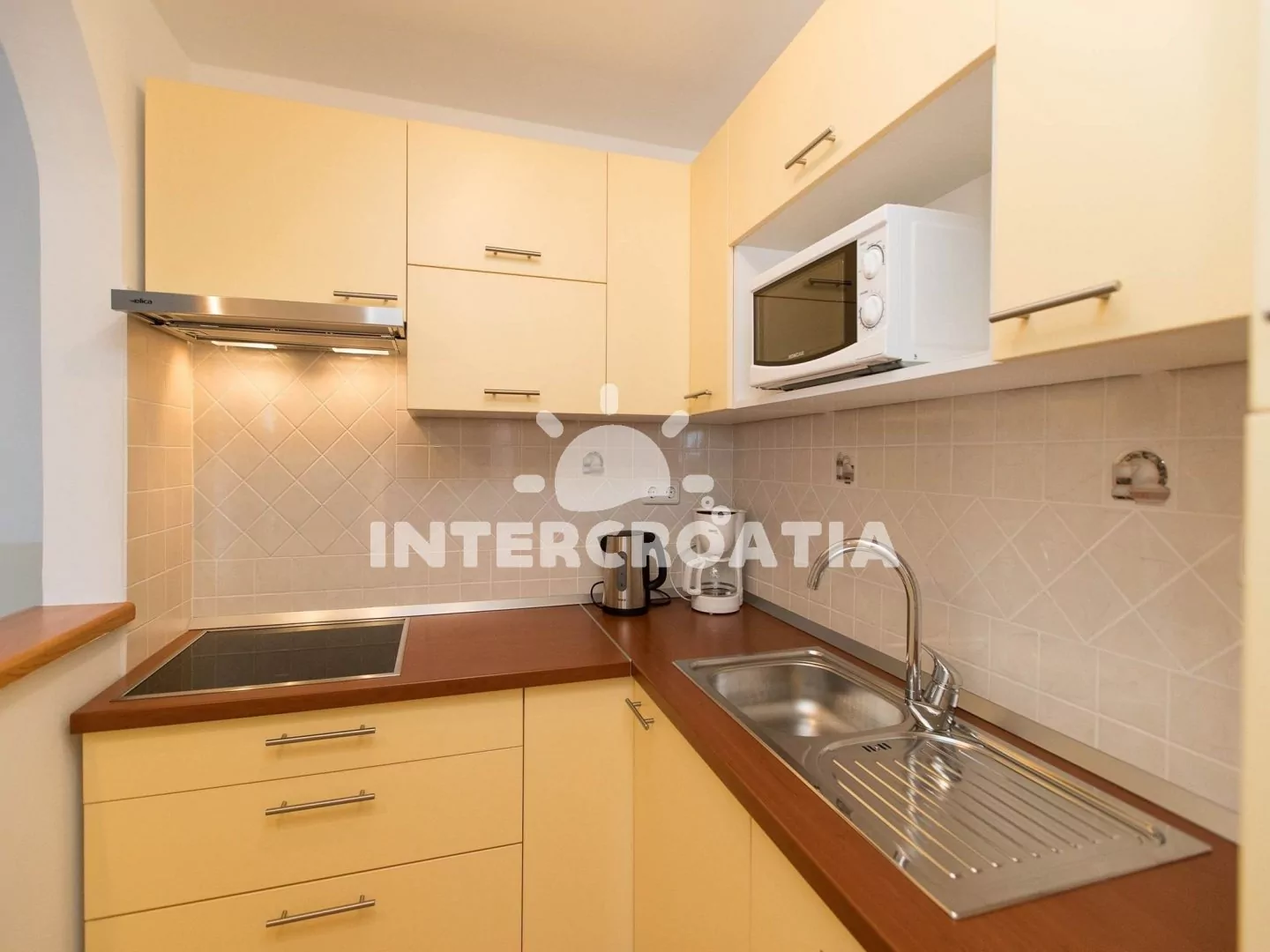 Apartmán (50 m2) s vlastní terasou se nachází v přízemí domu a je vhodný pro 2 až 4 osoby. Obývací pokoj je spojený s kuchyní. Kuchyňská linka je vybavena sklokeramickou varnou deskou, digestoří,…