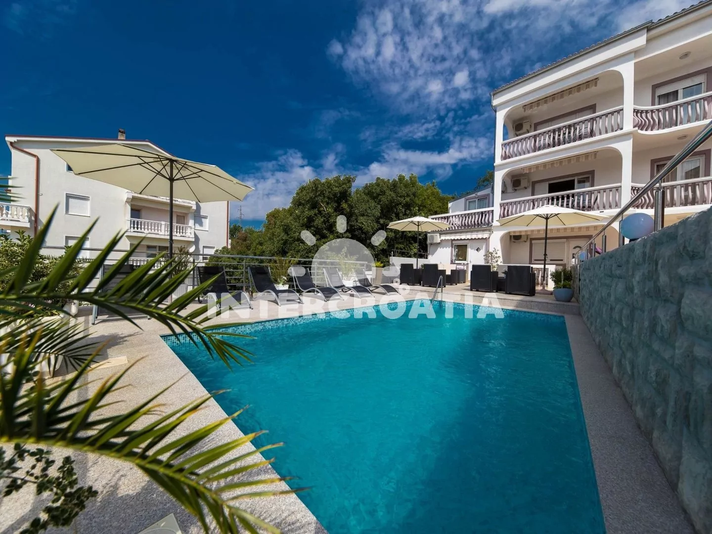 Apartmánová vila s bazénem, lehátky a terasou s venkovním posezením. Vila nabízí ubytování ve 4 apartmánech s lodžiemi. K dispozici parkování u objektu.