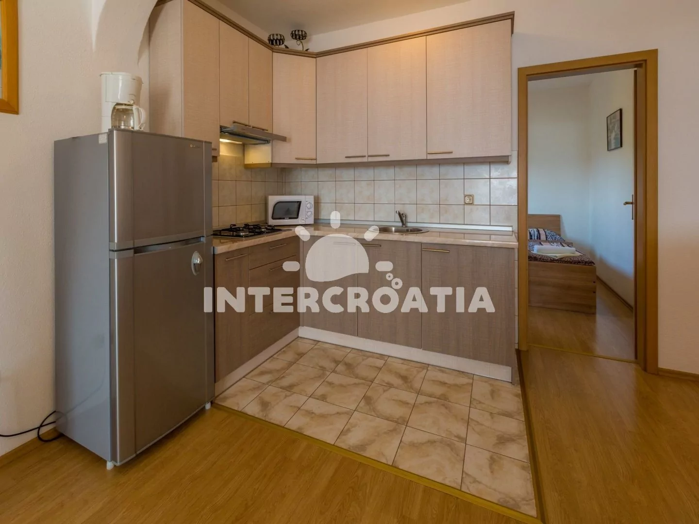 Vzdálenosti: Moře a oblázková-skalnatá pláž 1,2 km, centrum, lékárna, ambulance, banka, pošta, muzeum, diskotéka, půjčovna kol 1,4 km, čerpací stanice 1,5 km, restaurace, bar 250 m, směnárna 700 m, supermarket 800 m, potápění, tenis, minigolf 2 km, letiště 22 km.