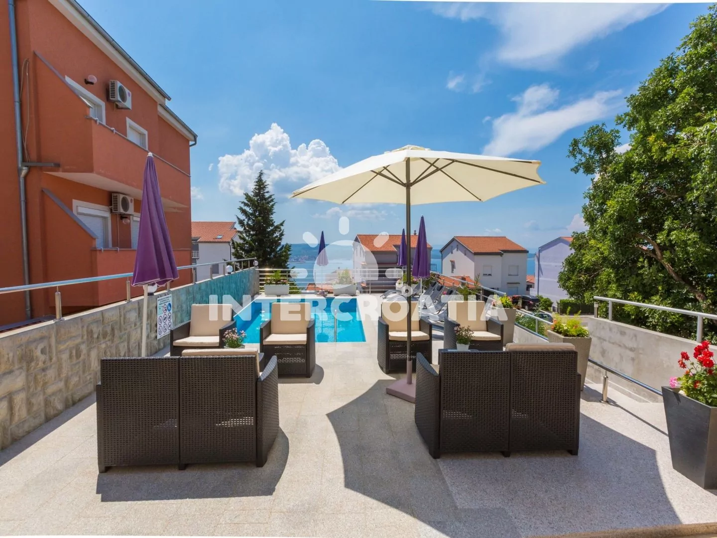 Velmi hezká apartmánová vila s bazénem, lehátky a terasou s venkovním posezením. Vila nabízí ubytování ve 4 apartmánech s lodžiemi a výhledem na moře. K dispozici parkování u objektu.