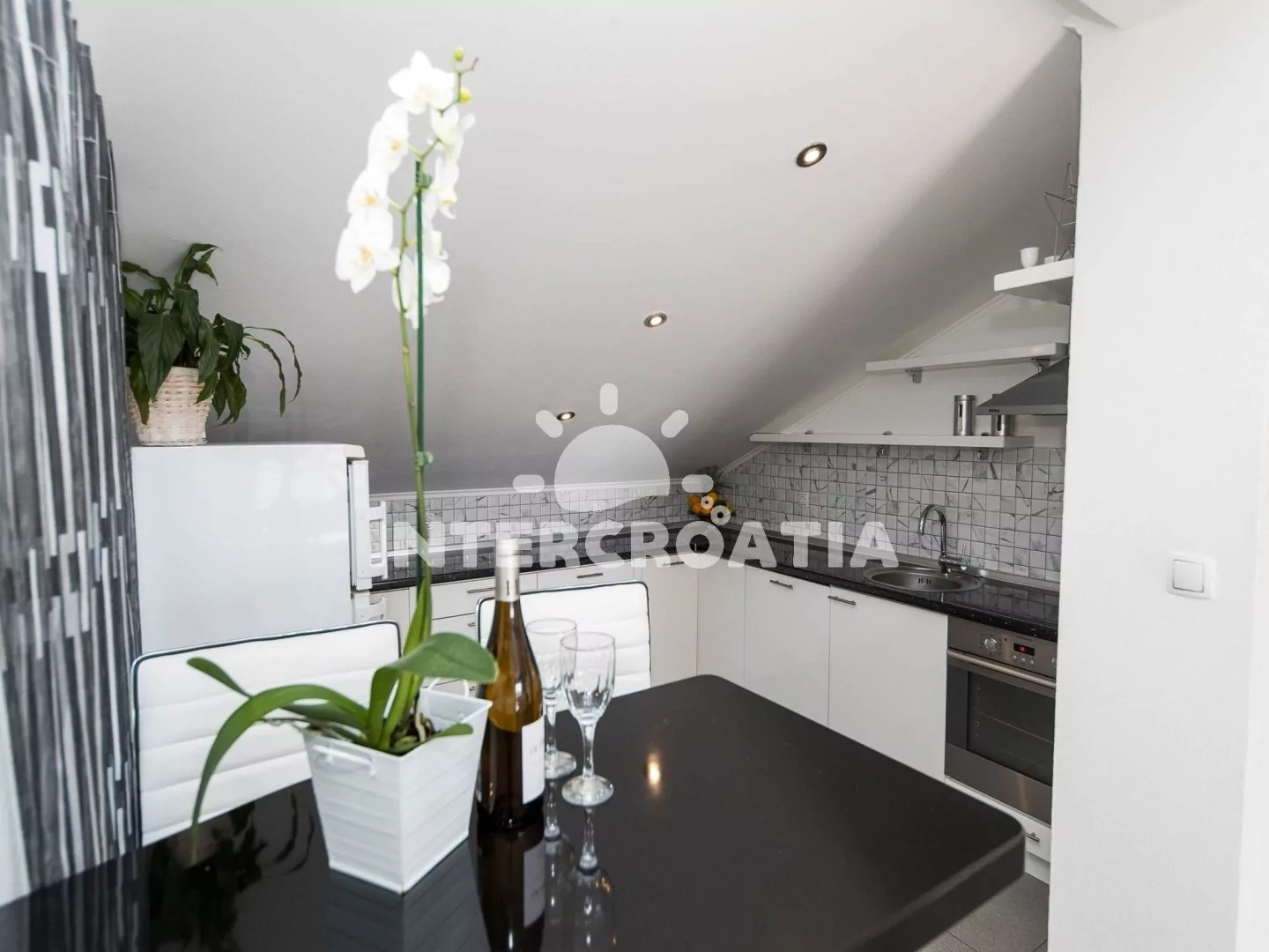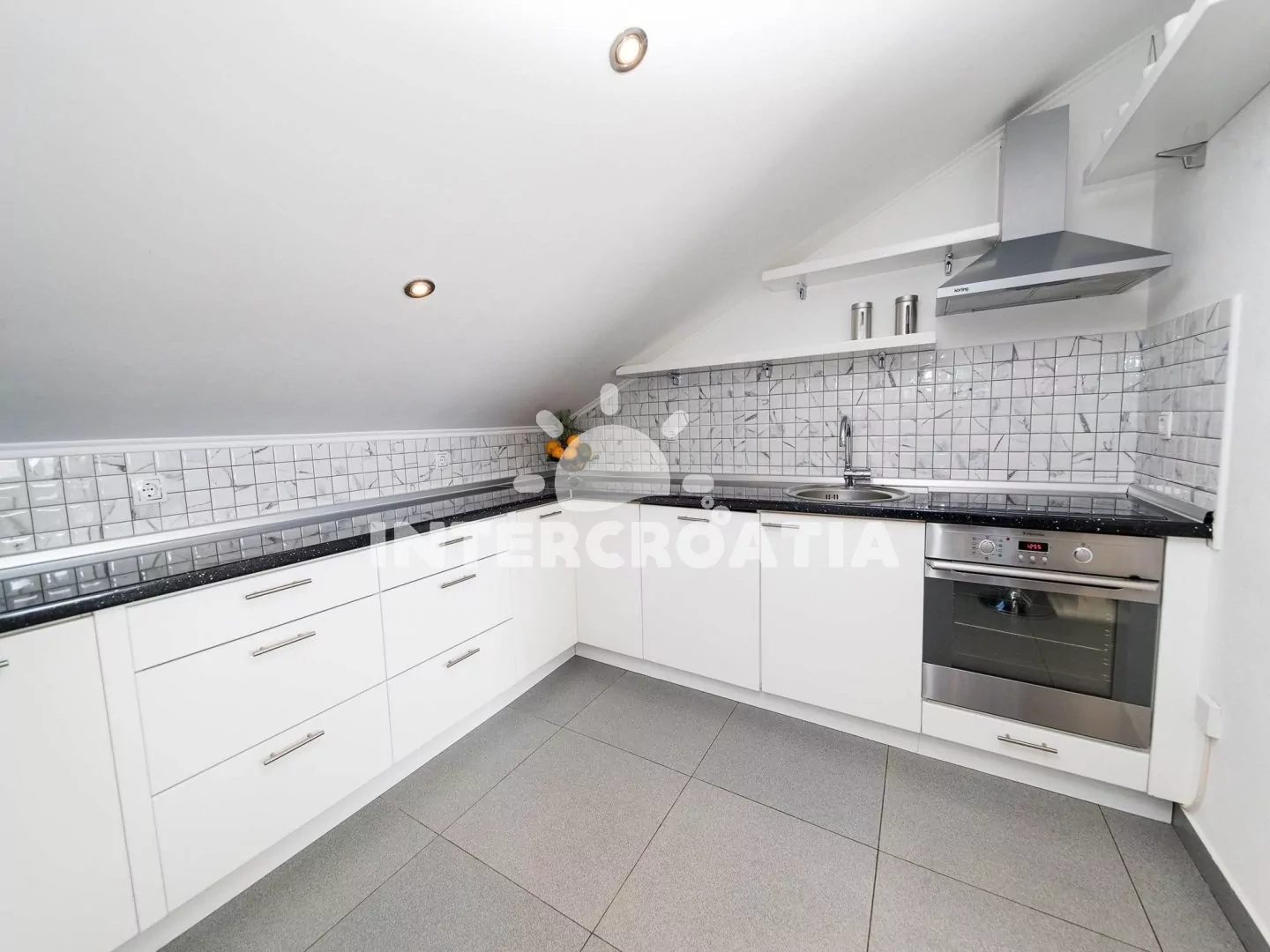 Podkrovní apartmán (90 m2) se střešní terasou a výhledem na moře je vhodný pro 4 osoby. Obývací pokoj je spojený s kuchyní. Kuchyňská linka je vybavena sklokeramickou varnou deskou, vestavěnou…
