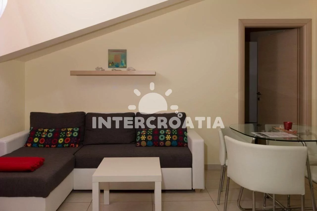 Apartmán (40 m2) se nachází ve 4. patře domu a je vhodný pro až 4 osoby. Obývací pokoj je spojený s kuchyní. Kuchyňská linka je vybavena s varnou deskou, rychlovarnou konvicí, kávovarem, nádobím a lednicí s mrazákem. Obývací pokoj s jídelním stolem pro 4 osoby, pohovkou, televizí se satelitním programem, dvoulůžkem a klimatizací. Ložnice s jedním dvoulůžkem. Koupelna se sprchovým koutem, umyvadlem, pračkou, fénem, bidetem a wc. Vzhledem k umístění objektu, přímo v centru města je možné parkování, na zpoplatněném parkovišti 200 m od objektu (cca 7 €/den).