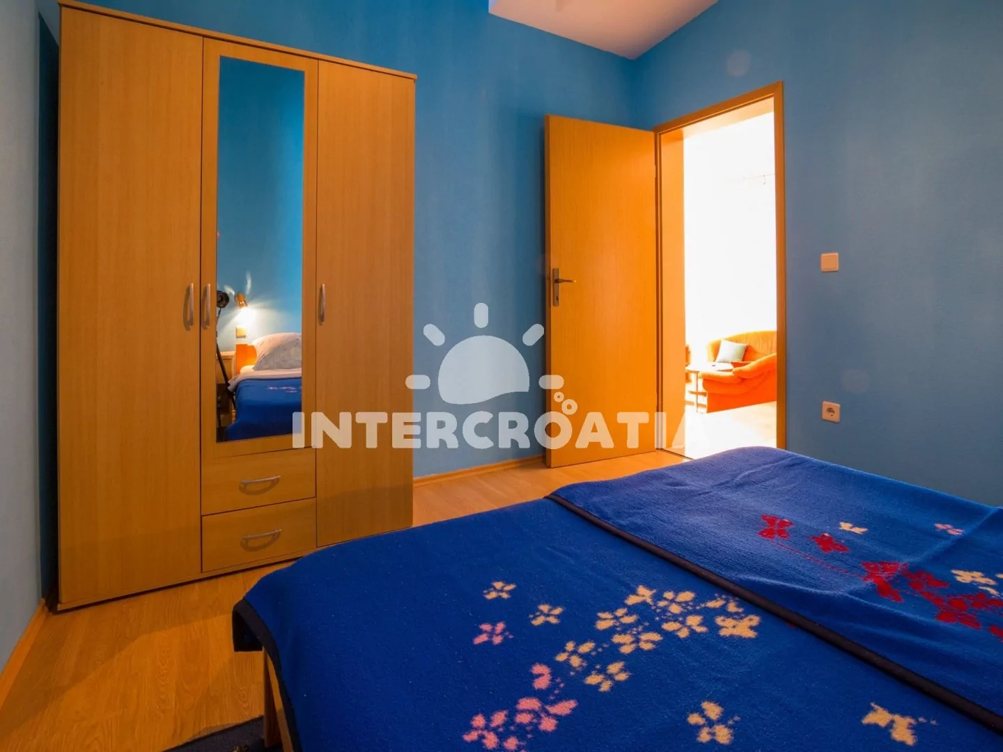 Apartmán (55 m2) s terasou a posezením se nachází v přízemí domu a je vhodný pro 4 až 5 osob. Obývací pokoj je spojený s kuchyní. Kuchyňská linka je vybavena varnou deskou, digestoří, troubou, rychlovarnou konvicí, kávovarem, toustovačem, nádobím a lednicí s mrazákem. Obývací pokoj s jídelním stolem pro 5 osob, rohovou pohovkou, televizí se satelitním programem, klimatizací a vstupem na terasu. První ložnice s dvoulůžkem a přistýlkou (extra lůžko pro 1 osobu). Druhá ložnice s dvoulůžkem. Koupelna se sprchovým koutem, umyvadlem, pračkou a wc. Hostům je k dispozici parkování u objektu zdarma.