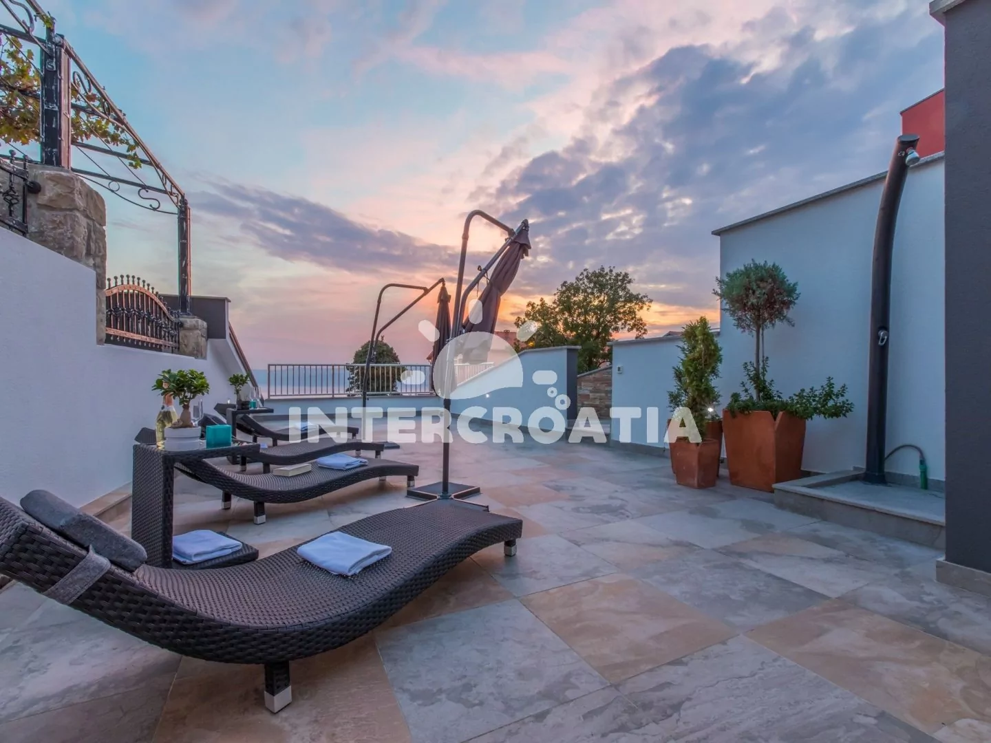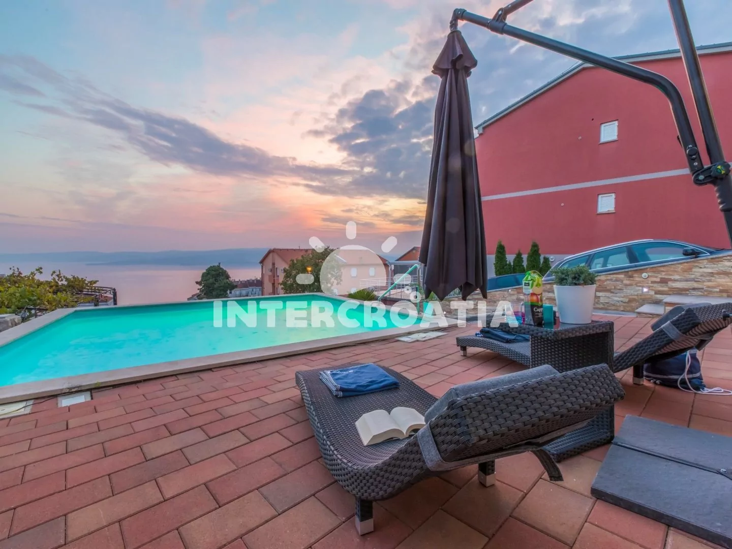 Dobře situovaná a moderně zařízená vila s bazénem a výhledem na moře. K dispozici společná terasa s posezením, grilem a lehátky u bazénu. Apartmány disponují lodžiemi a výhledem na moře. Parkovací místa u objektu.