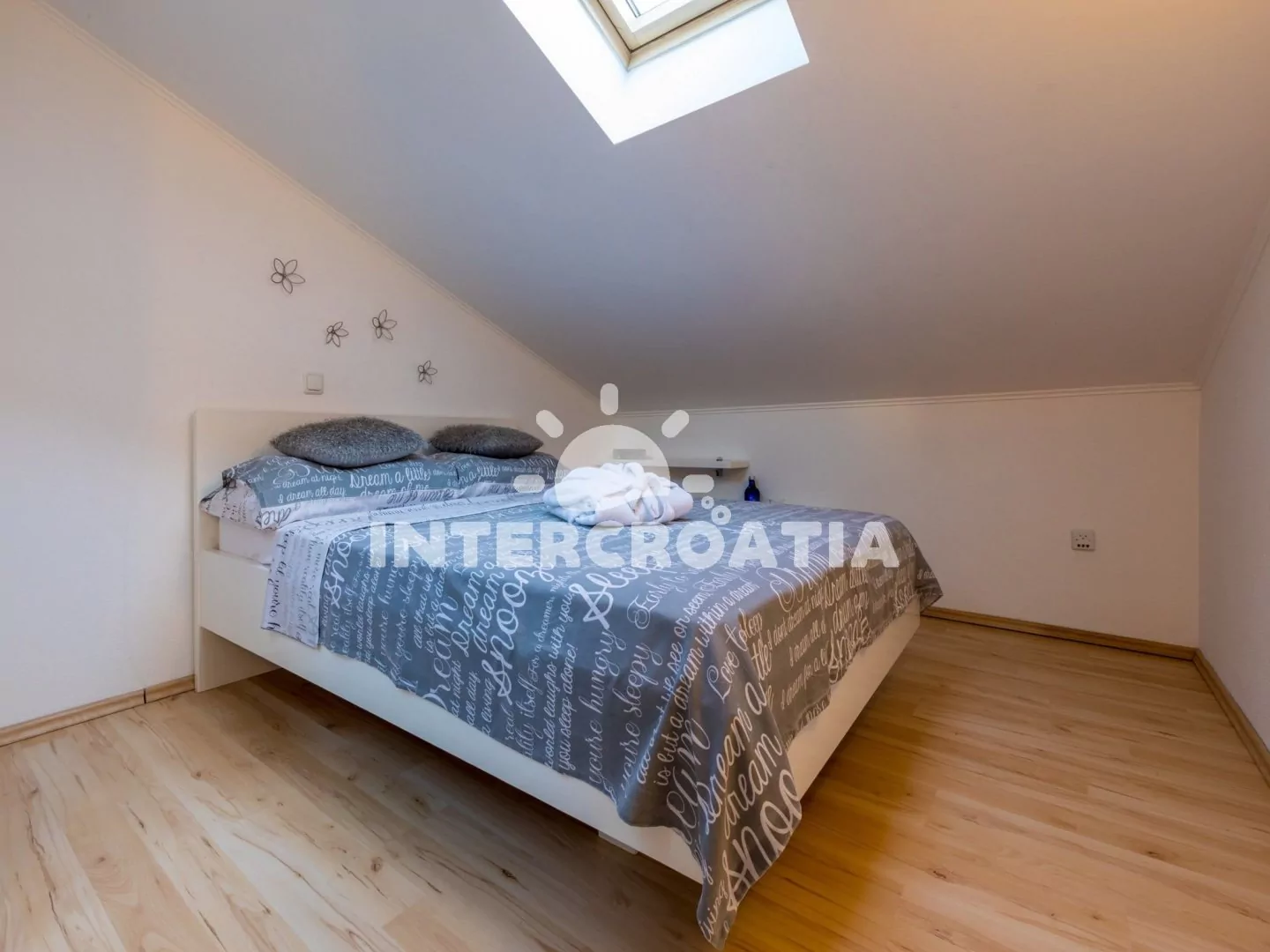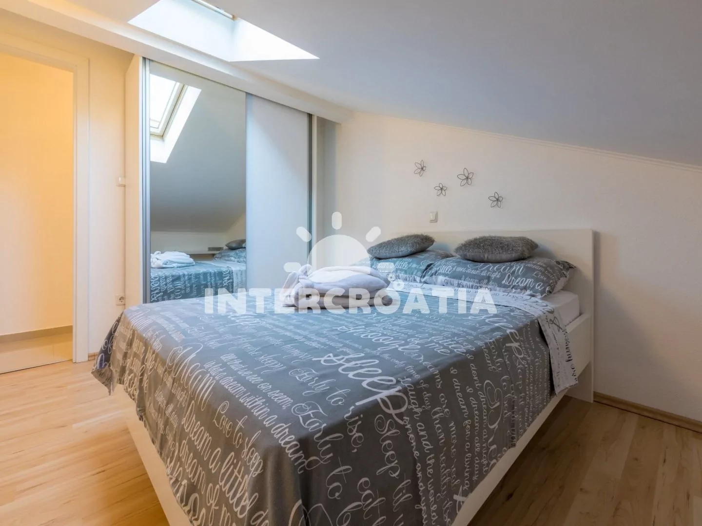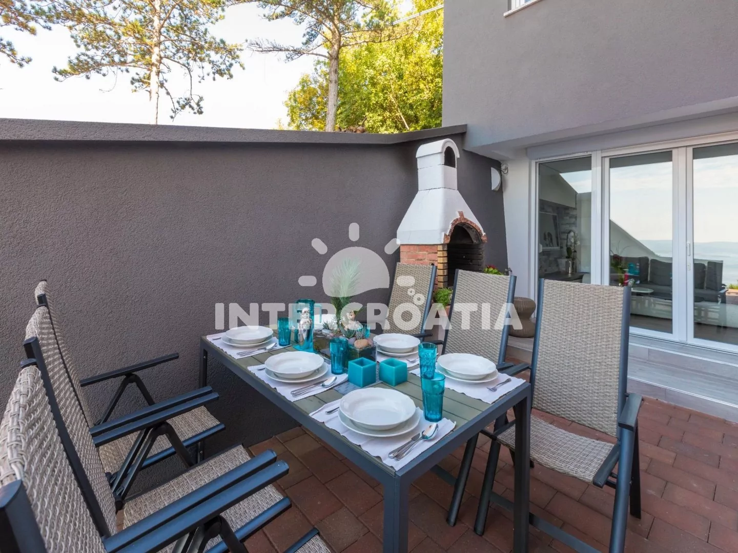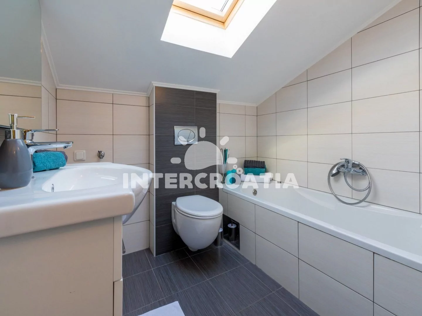 Podkrovní apartmán (50 m2) s výhledem na moře a je vhodný pro 4 až 5 osob. Obývací pokoj je spojený s kuchyní. Kuchyňská linka je vybavena varnou deskou, digestoří, vestavěnou troubou, rychlovarnou…