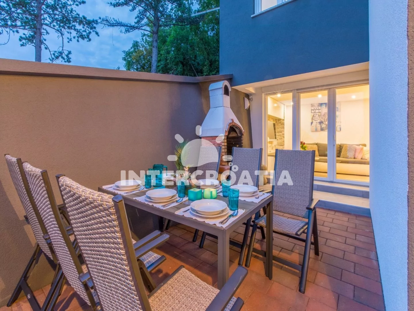 Podkrovní apartmán (50 m2) s výhledem na moře a je vhodný pro 4 až 5 osob. Obývací pokoj je spojený s kuchyní. Kuchyňská linka je vybavena varnou deskou, digestoří, vestavěnou troubou, rychlovarnou konvicí, kávovarem, nádobím a lednicí s mrazákem. Obývací pokoj s jídelním stolem pro 2 osoby, rohovou pohovkou (rozložitelná na extra lůžko pro 1 osobu), televizí se satelitním programem, radiem a klimatizací. První i druhá ložnice je vybavena vždy s jedním dvoulůžkem. Koupelna s vanou, umyvadlem a wc. Hostům je k dispozici parkování u objektu zdarma.