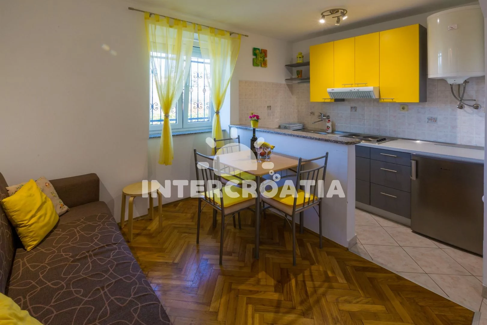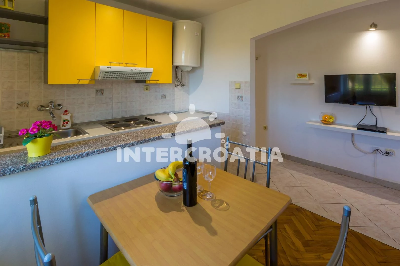 Apartmán (31 m2) s vlastní terasou a venkovním posezením, se nachází ve zvýšeném přízemí domu a je vhodný pro 2 až 4 osoby. Obývací pokoj je spojený s kuchyní. Kuchyňská linka je vybavena varnou…