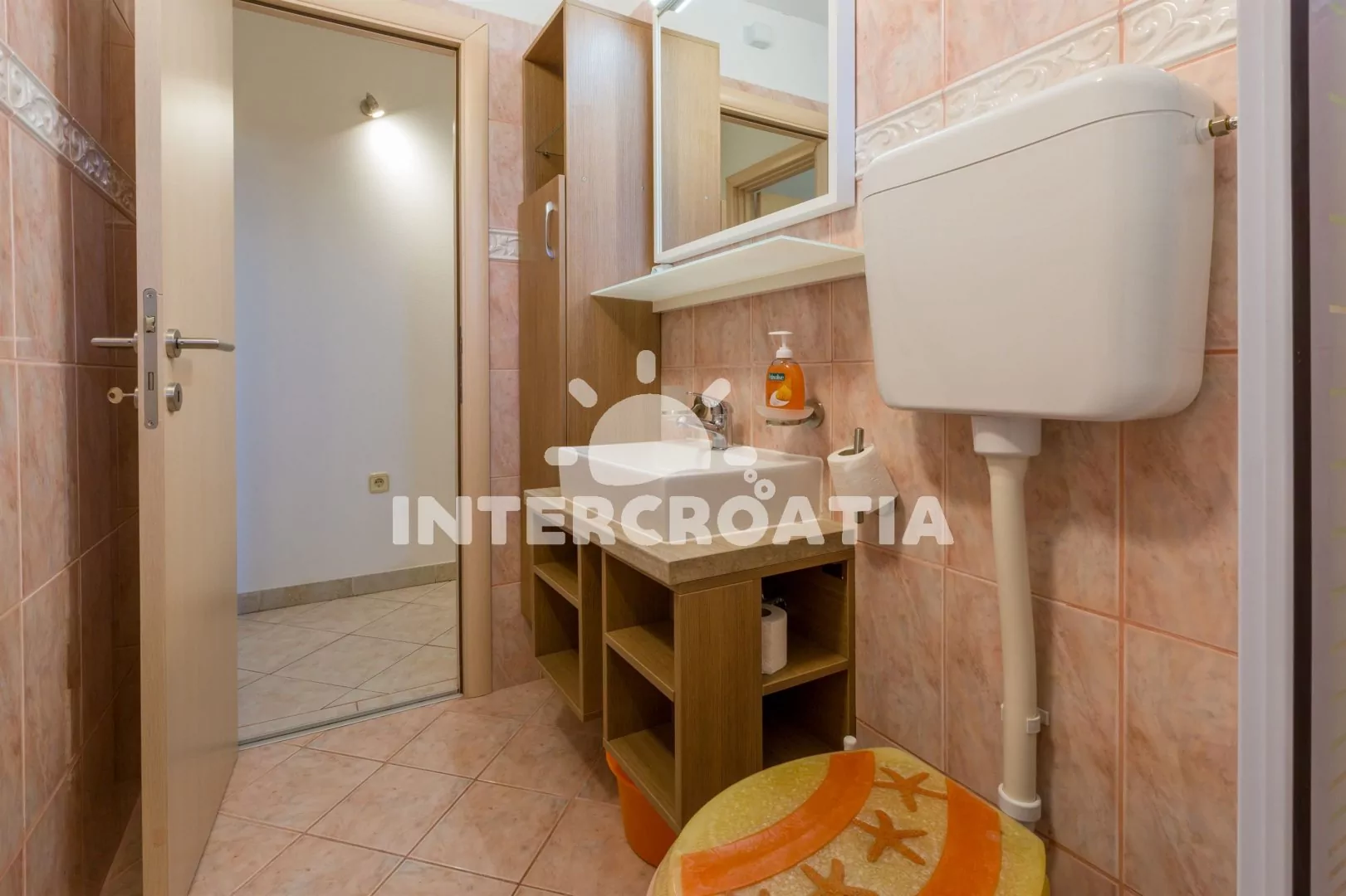 Apartmán (31 m2) s vlastní terasou a venkovním posezením, se nachází ve zvýšeném přízemí domu a je vhodný pro 2 až 4 osoby. Obývací pokoj je spojený s kuchyní. Kuchyňská linka je vybavena varnou deskou, digestoří, rychlovarnou konvicí, toustovačem, kávovarem, nádobím a lednicí s mrazákem. Obývací pokoj s jídelním stolem pro 3 osoby, pohovkou (rozložitelná na extra lůžko pro 2 osoby), televizí se satelitním programem a klimatizací. Ložnice s jedním dvoulůžkem. Koupelna se sprchovým koutem, umyvadlem, fénem a wc. Hostům je k dispozici parkování u objektu zdarma.