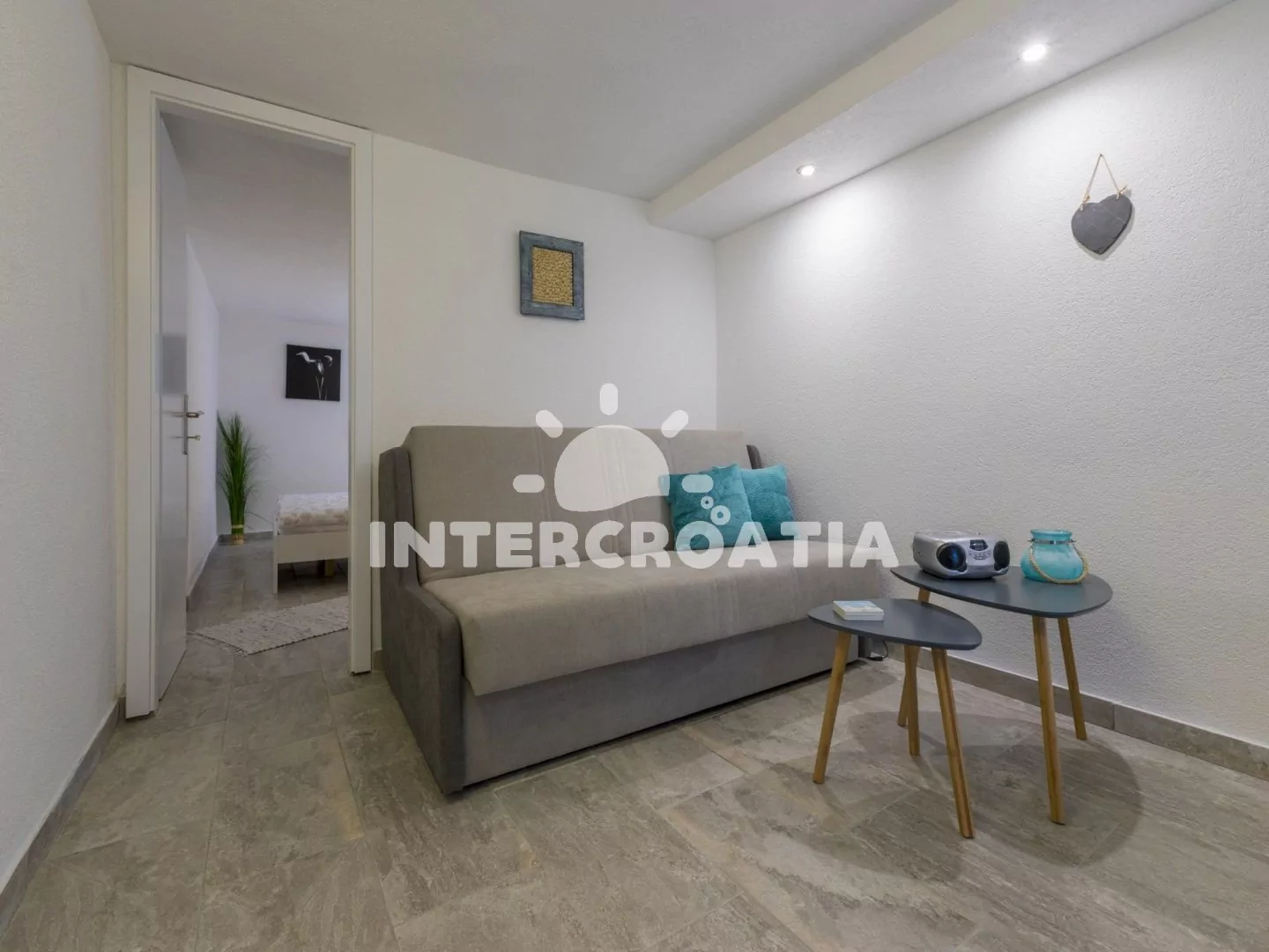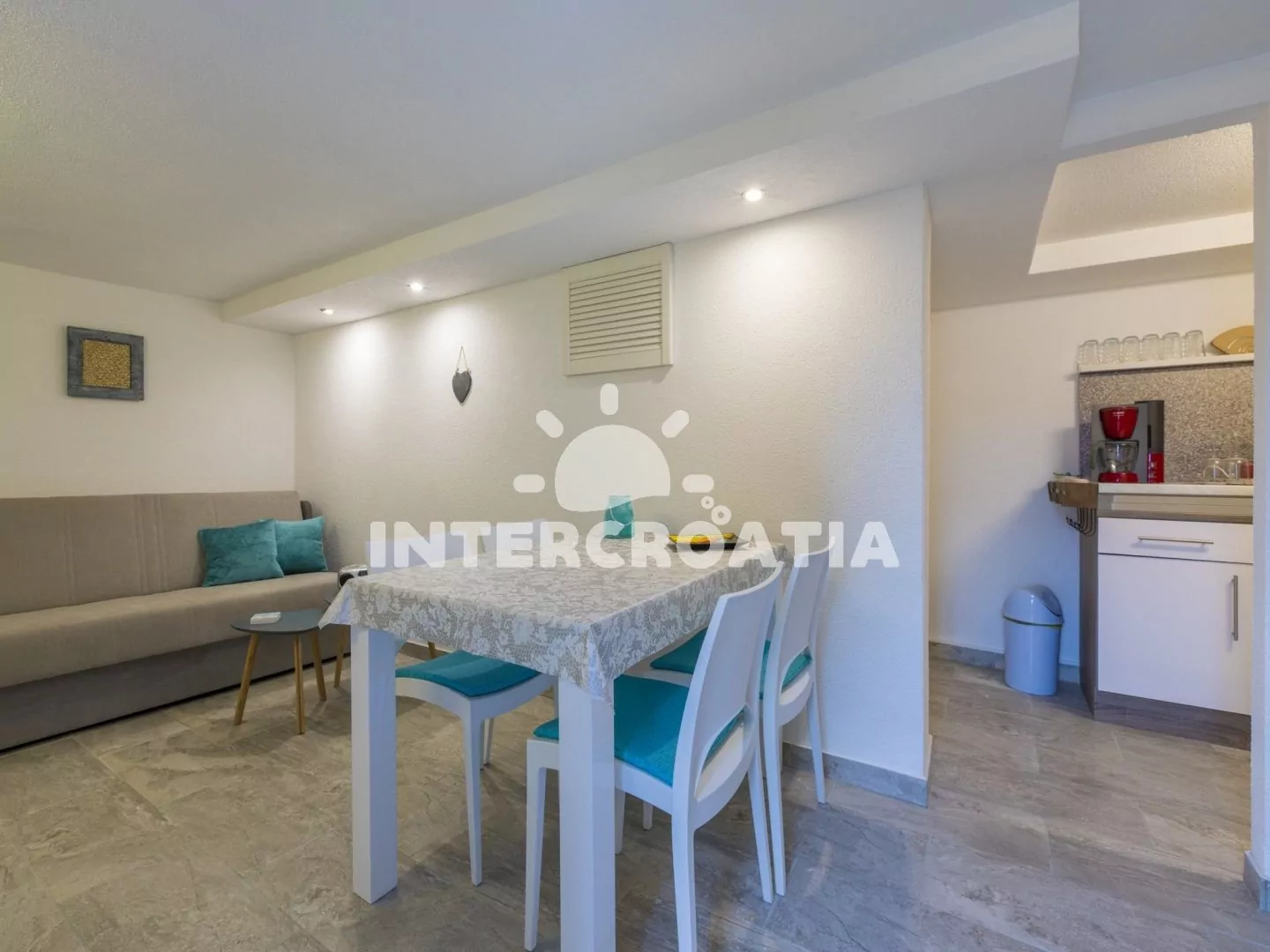 Apartmán (35 m2) s terasou, grilem a posezením, se nachází v přízemí domu a je vhodný pro 2 až 4 osoby. Obývací pokoj je spojený s kuchyní. Kuchyňská linka je vybavena varnou deskou, rychlovarnou konvicí, kávovarem, toustovačem, nádobím a lednicí s mrazákem. Obývací pokoj s jídelním stolem pro 4 osoby, pohovkou (rozložitelná na extra lůžko pro 2 osoby), televizí se satelitním programem, klimatizací a vstupem na terasu. Ložnice s jedním dvoulůžkem. Koupelna se sprchovým koutem, umyvadlem, fénem a wc. Hostům je k dispozici parkování u objektu zdarma.