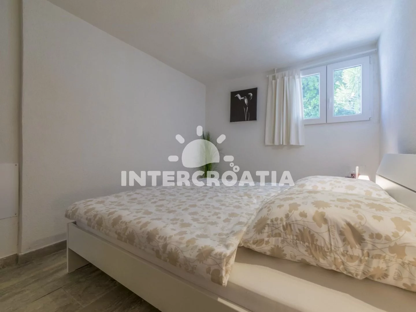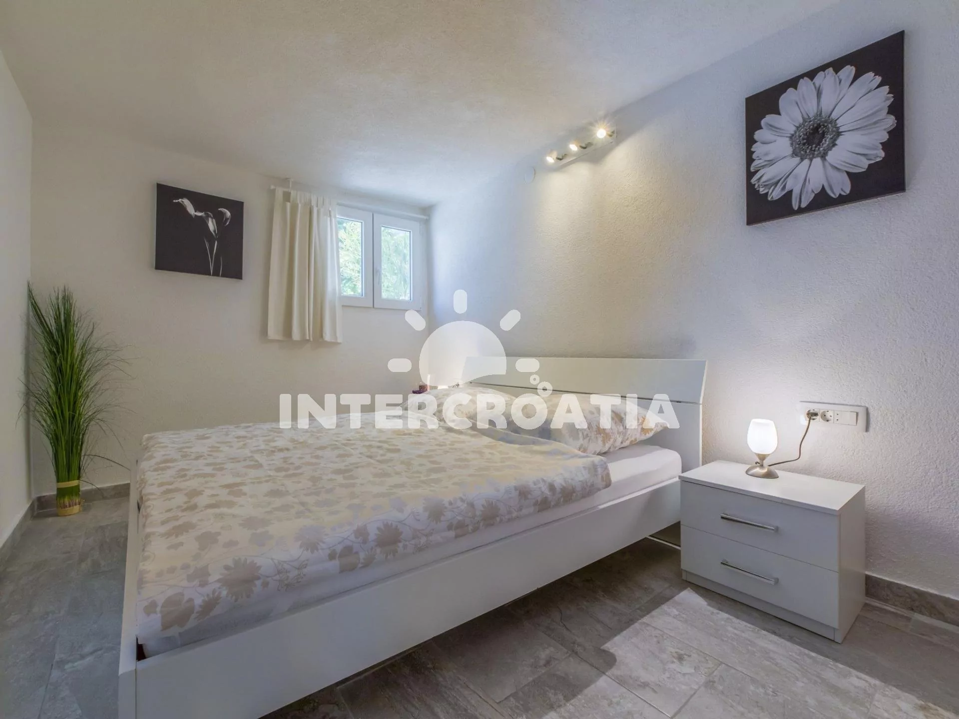 Příjemně zařízený dům se zahradou, terasou s venkovním posezením a grilem. Dům se nachází 400 m pěší chůzí od moře a písčité pláže. Parkovací místa pro automobily před domem.