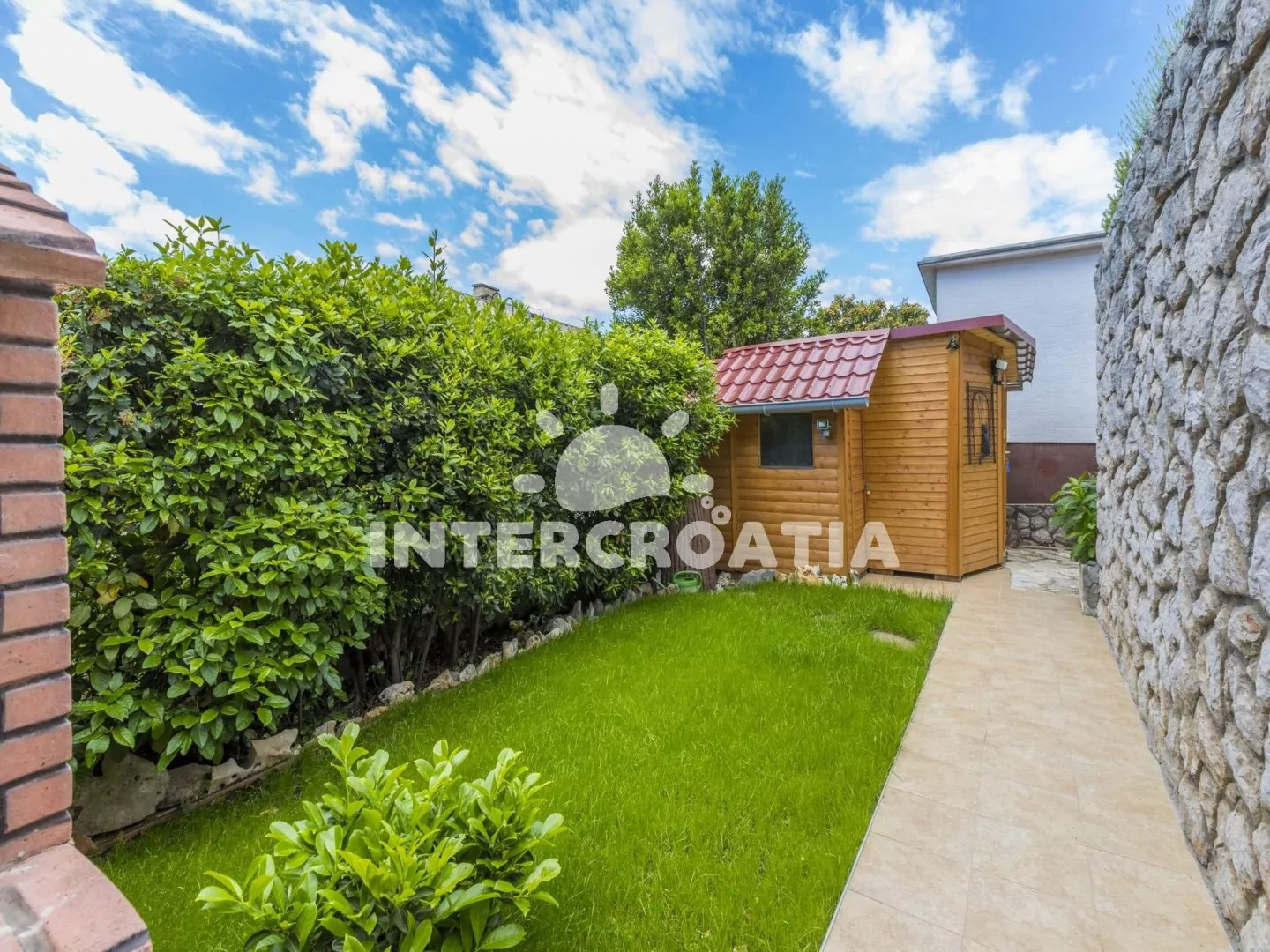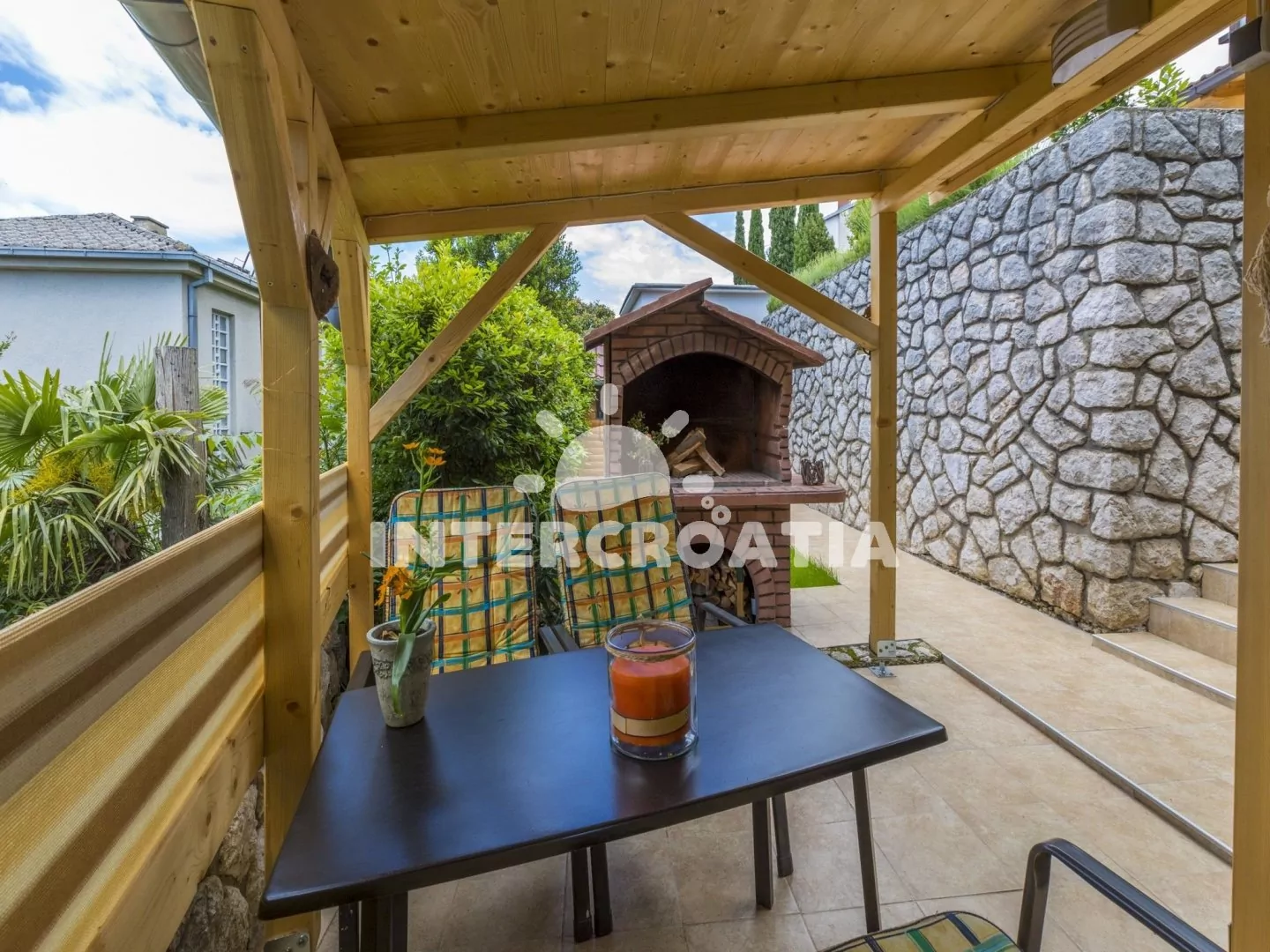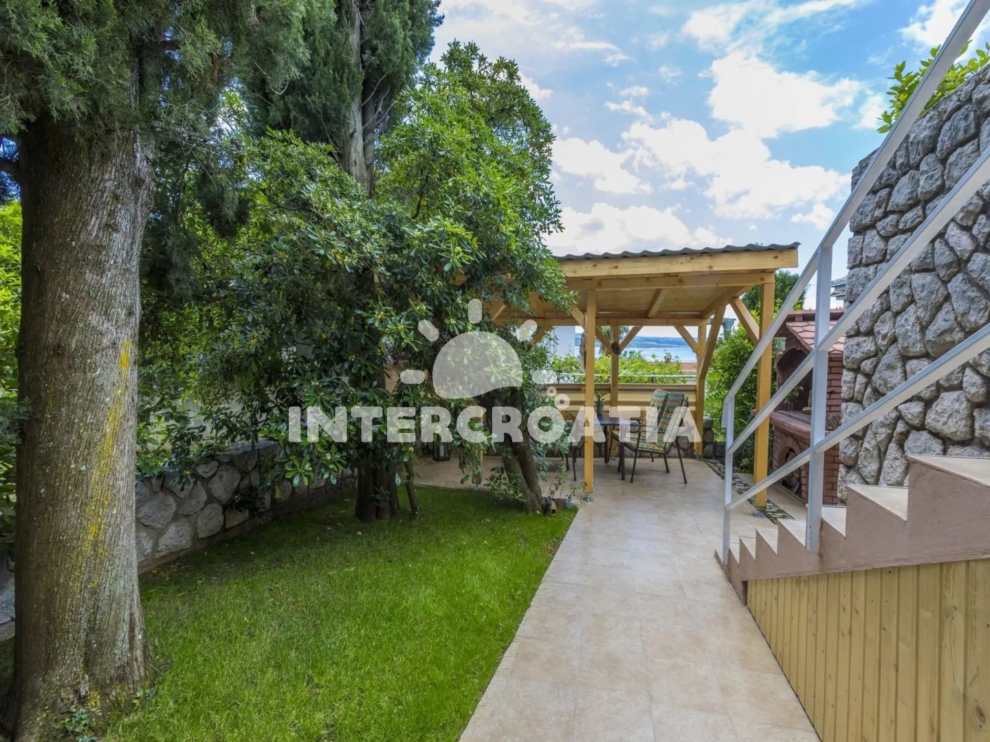 Moderně zařízený dům se zahradou, terasou s venkovním posezením a grilem. Dům se nachází 400 m pěší chůzí od moře a písčité pláže. Parkovací místa pro automobily před domem.