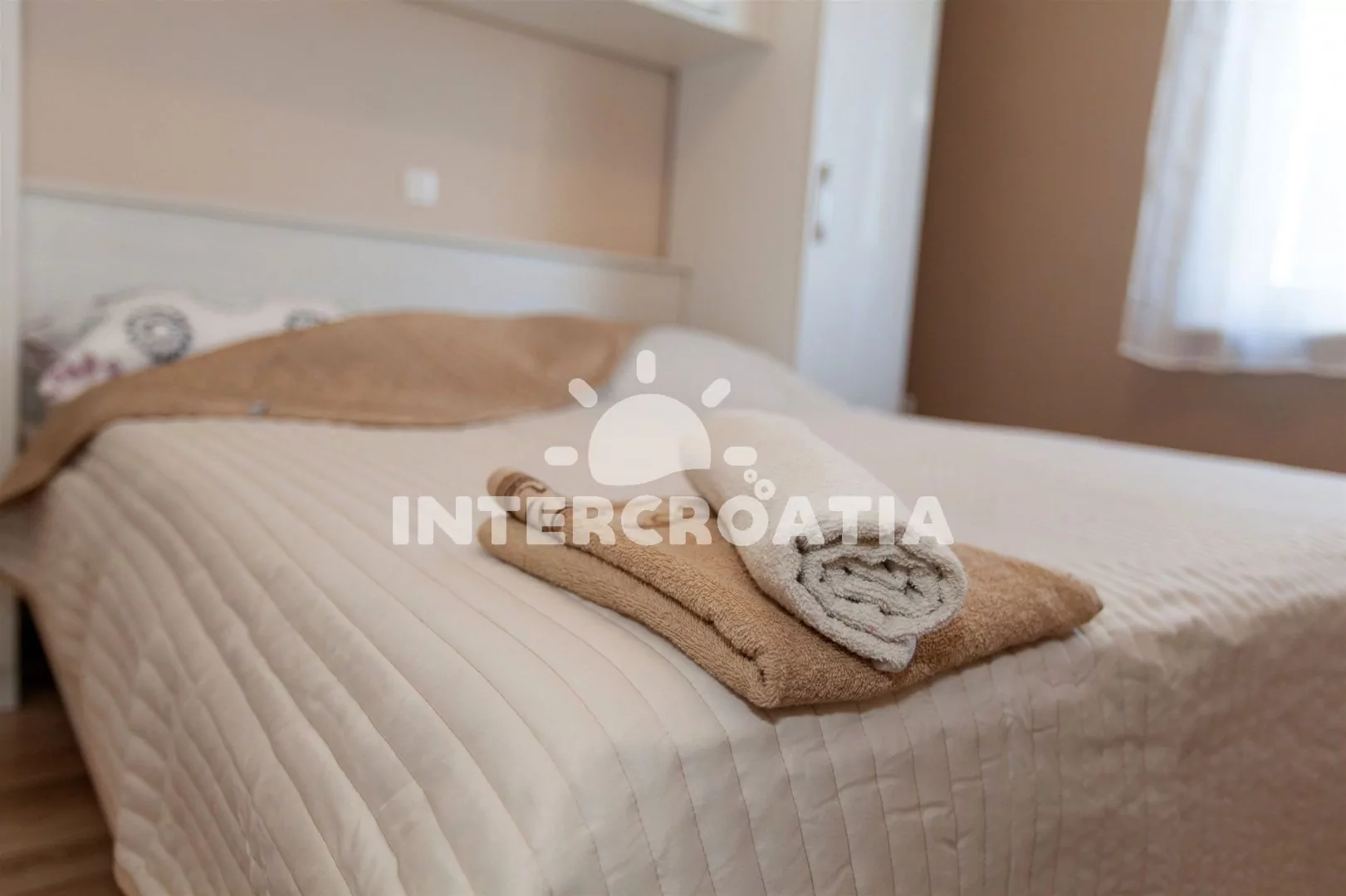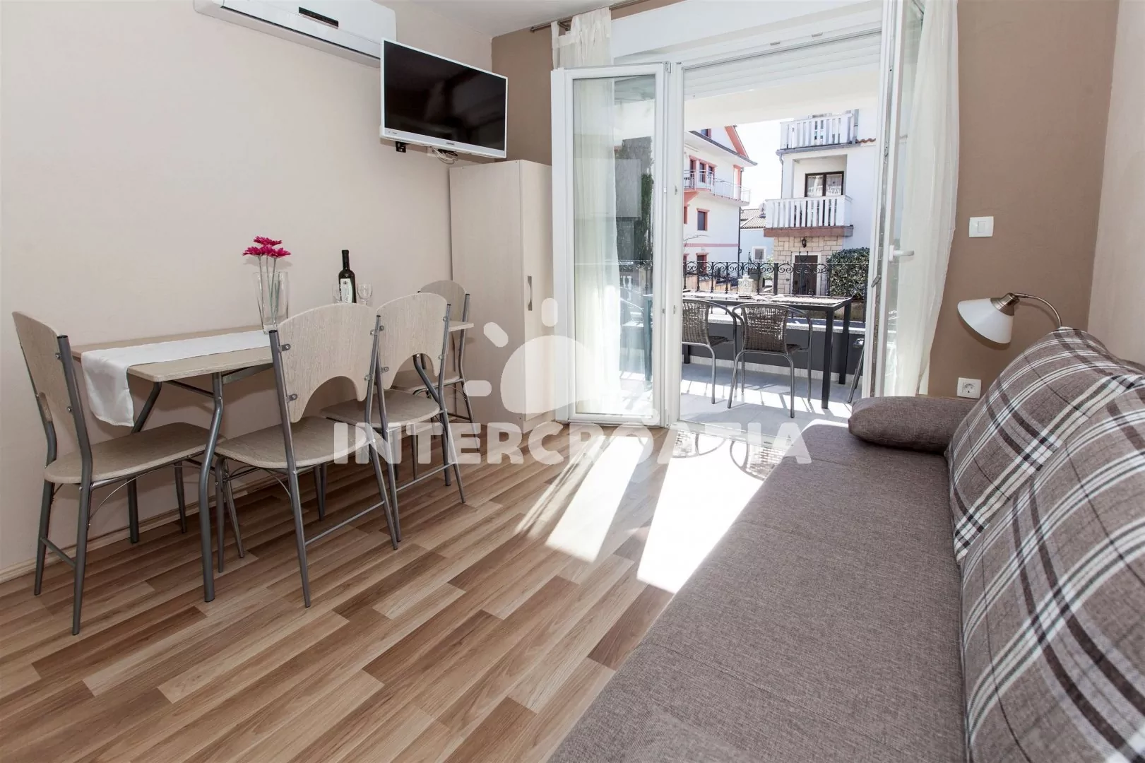 Vkusně zařízený apartmán (33 m2) s terasou a venkovním posezením se nachází v přízemí domu a je vhodný pro 2 až 4 osoby. Obývací pokoj je spojený s kuchyní. Kuchyňská linka je vybavena sklokeramickou varnou deskou, digestoří, mikrovlnnou troubou, myčkou na nádobí, kávovarem, nádobím a lednicí s mrazákem. Obývací pokoj s jídelním stolem pro 4 osoby, pohovkou (rozložitelná na extra lůžko pro 2 osoby), televizí se satelitním programem, klimatizací a vstupem na terasu. Ložnice s dvoulůžkem. Koupelna se sprchovým koutem, umyvadlem a wc. Hostům je k dispozici parkování u objektu zdarma.