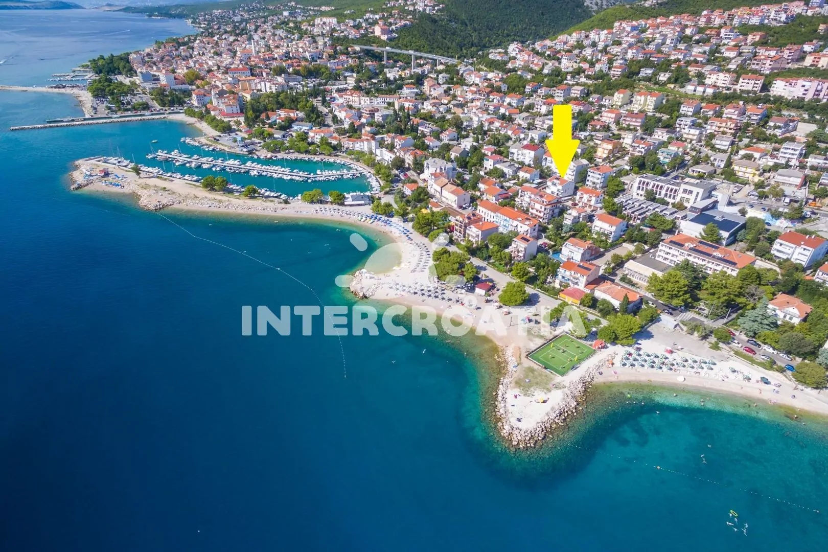 V oblasti Kvarnerského zálivu, mezi letoviskem Dramalj a Selce se rozkládá Crikvenica. Docházková vzdálenost od apartmánu k moři a oblázkové pláži je 160 m.