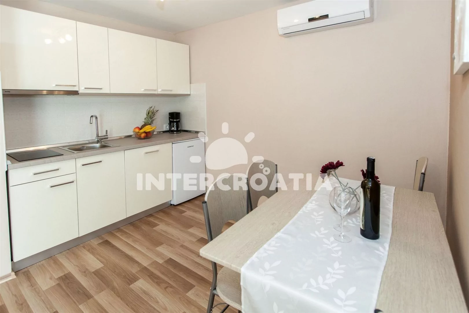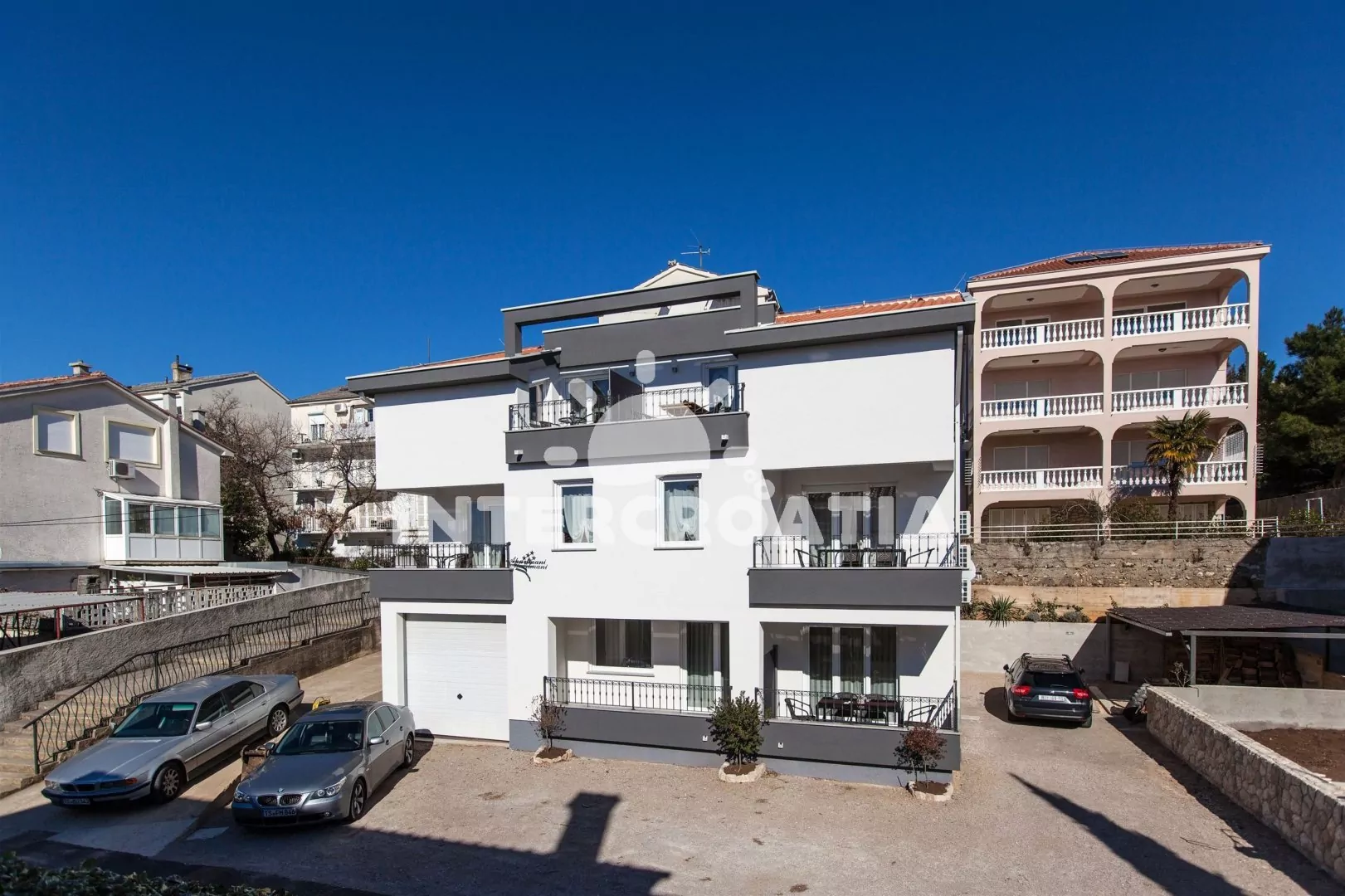 Vkusně zařízený apartmánový dům kousek od oblázkové pláže a centra města. Klimatizované apartmány s lodžiemi a venkovním posezením. U domu pozemek s parkovacími místy.