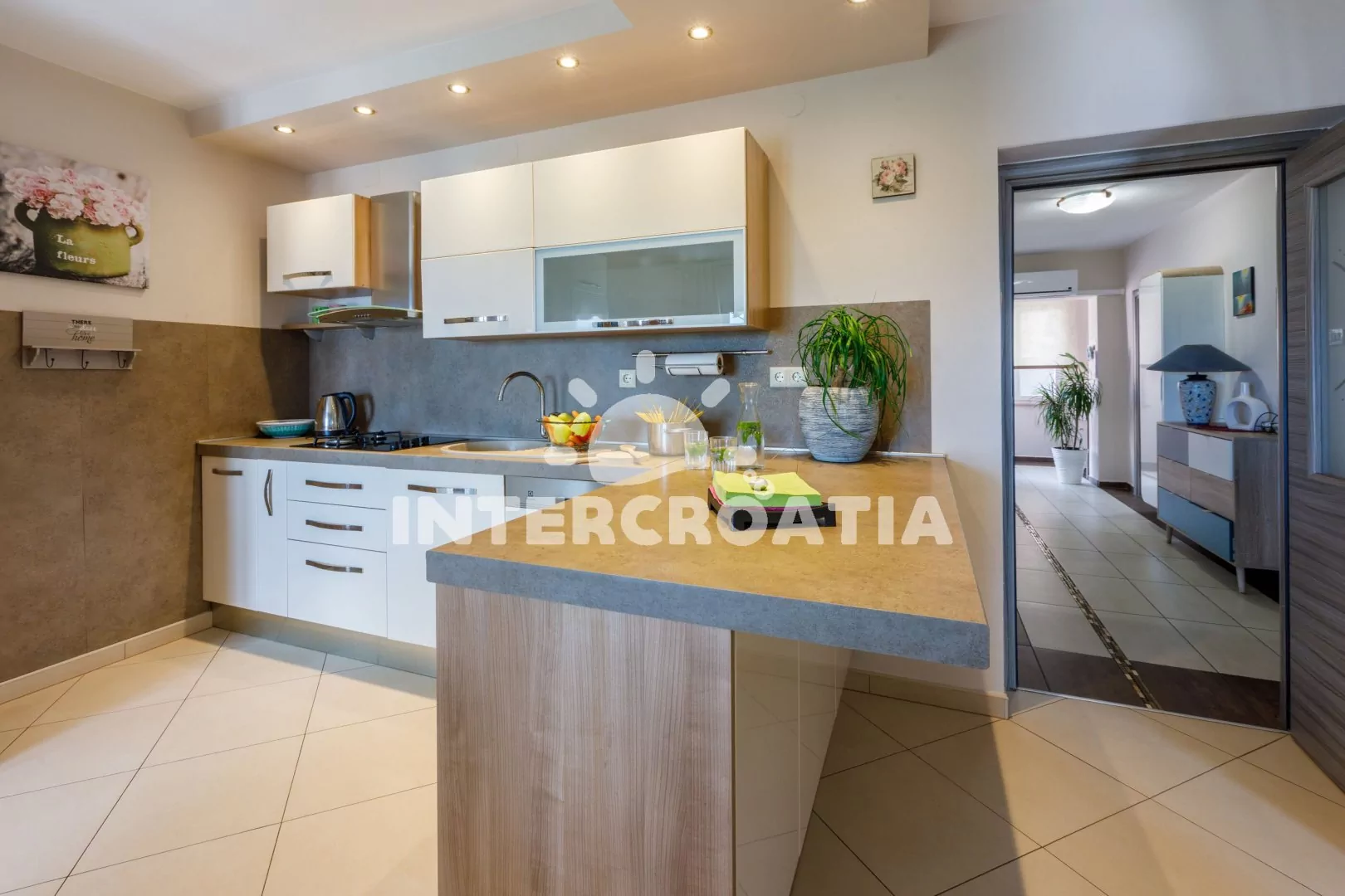 Prostorný a vkusně zařízený apartmán (98 m2) s vlastní terasou a výhledem na moře se nachází ve zvýšeném přízemí vily. Apartmán je vhodný pro 4 osoby. Kuchyň s jídelním stolem pro 4 osoby, moderní…