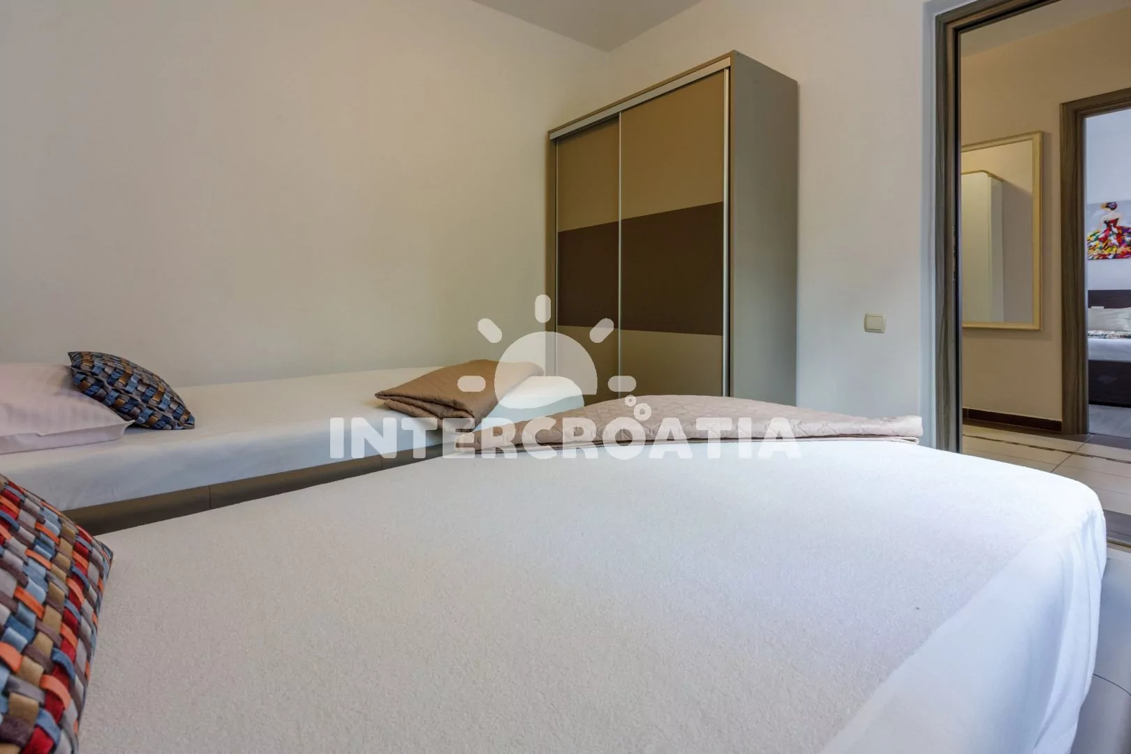 Turisté, kteří plánují strávit dovolenou v Crikvenici, si užijí nádherné koupání, kulturní vyžití, sportovní aktivity a zajímavé výlety. Docházková vzdálenost od apartmánu k moři a menší oblázkové pláži Kaštel je 500 m. Pláž nadchne milovníky bezstarostného odpočinku a plavání. Na pobřeží lemovaném stromy, najdete restauraci, kde vás čeká příjemné posezení s celou rodinou. Za 600 m od ubytování můžete navštívit rušnější oblázkovou pláž Podvorska. Procházka po letovisku vám odhalí cenný kostel Nanebevzetí Panny Marie, klášter Pauline, mlýn Tos a kostel sv. Antonína. Za zmínku stojí městské Akvárium, kde v nádržích žije více než 100 druhů mořských živočichů. Skvělý zábavný program a atmosféru si nenechte ujít během oblíbených událostí. Nejznámějšími slavnostmi jsou Dny Crikvenice, Přímořská noc a Rybářský týden. Bohatší kulturní zážitky vás čekají v Rijece. Každé léto se konají hudební vystoupení, divadelní představení, výstavy a folklórní slavnosti. Po gastronomickém zážitku v útulné taverně si naplánujte procházku historickým centrem, kde vás okouzlí Římský oblouk, kostel Panny Marie Loretánské, městská věž s hodinami, katedrála sv. Víta a středověký hrad Trsat ze 13. století. Pěším turistům doporučujeme navštívit pohoří Učka a Vinodolské údolí, které se pyšní zříceninami hradů.