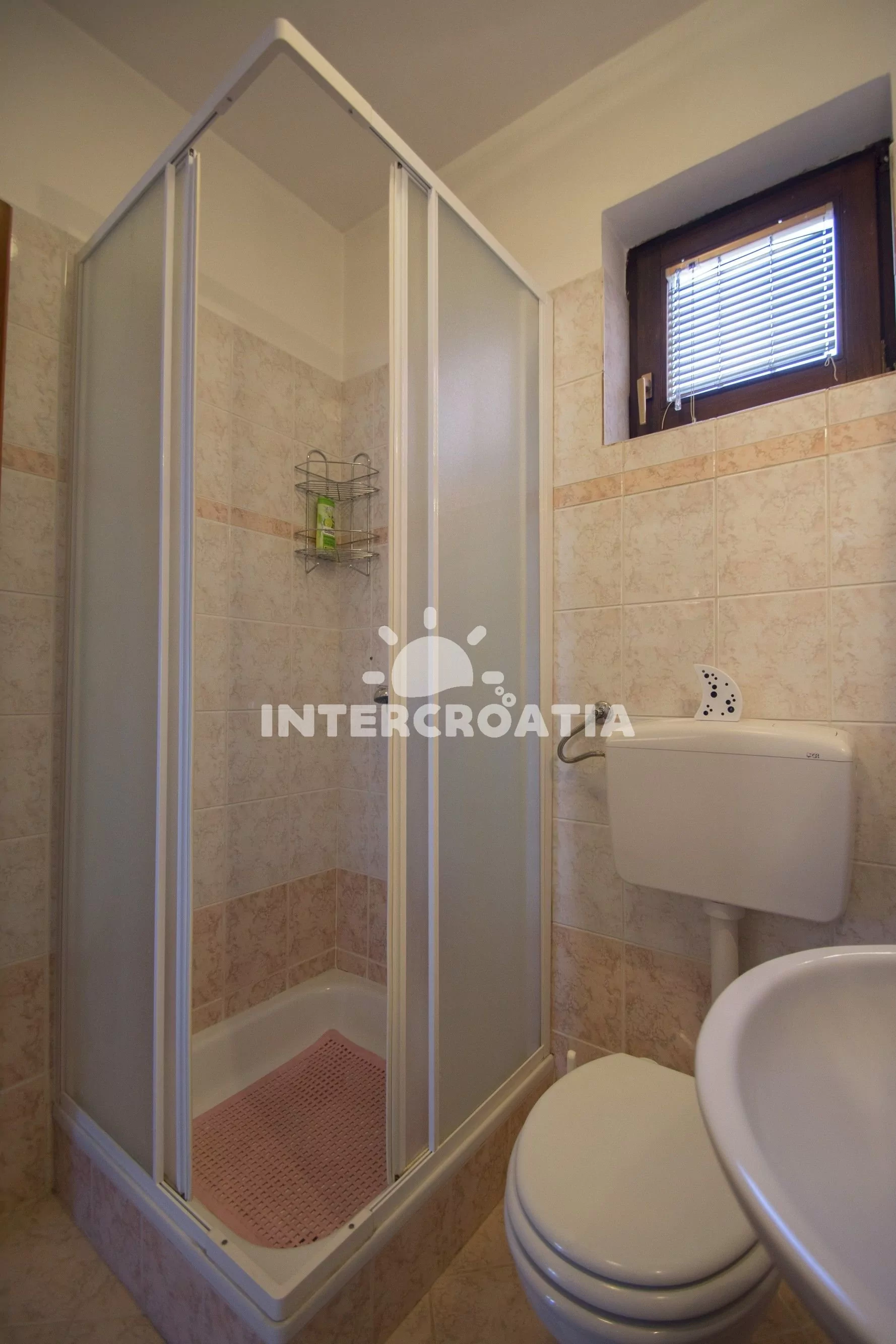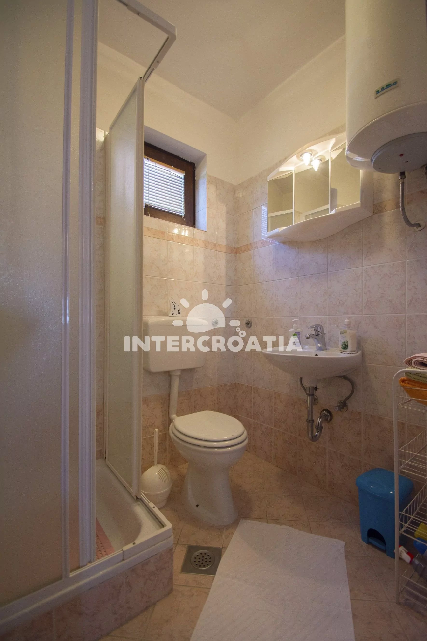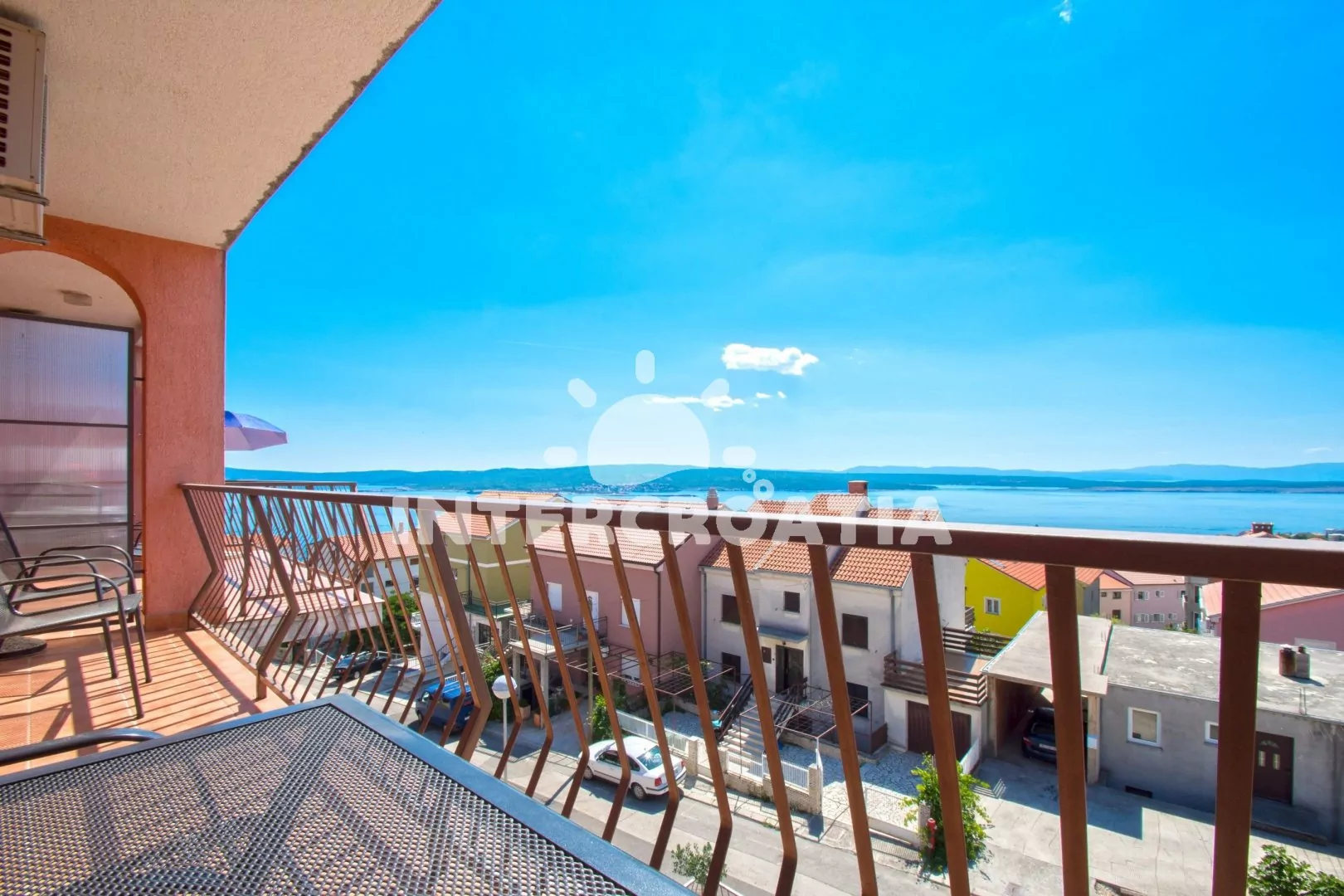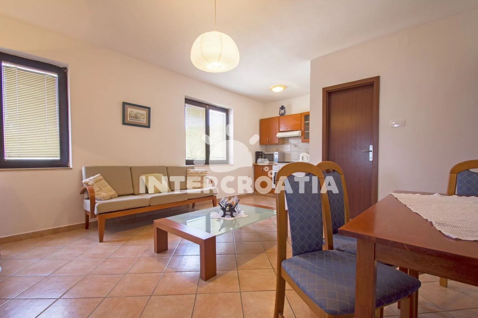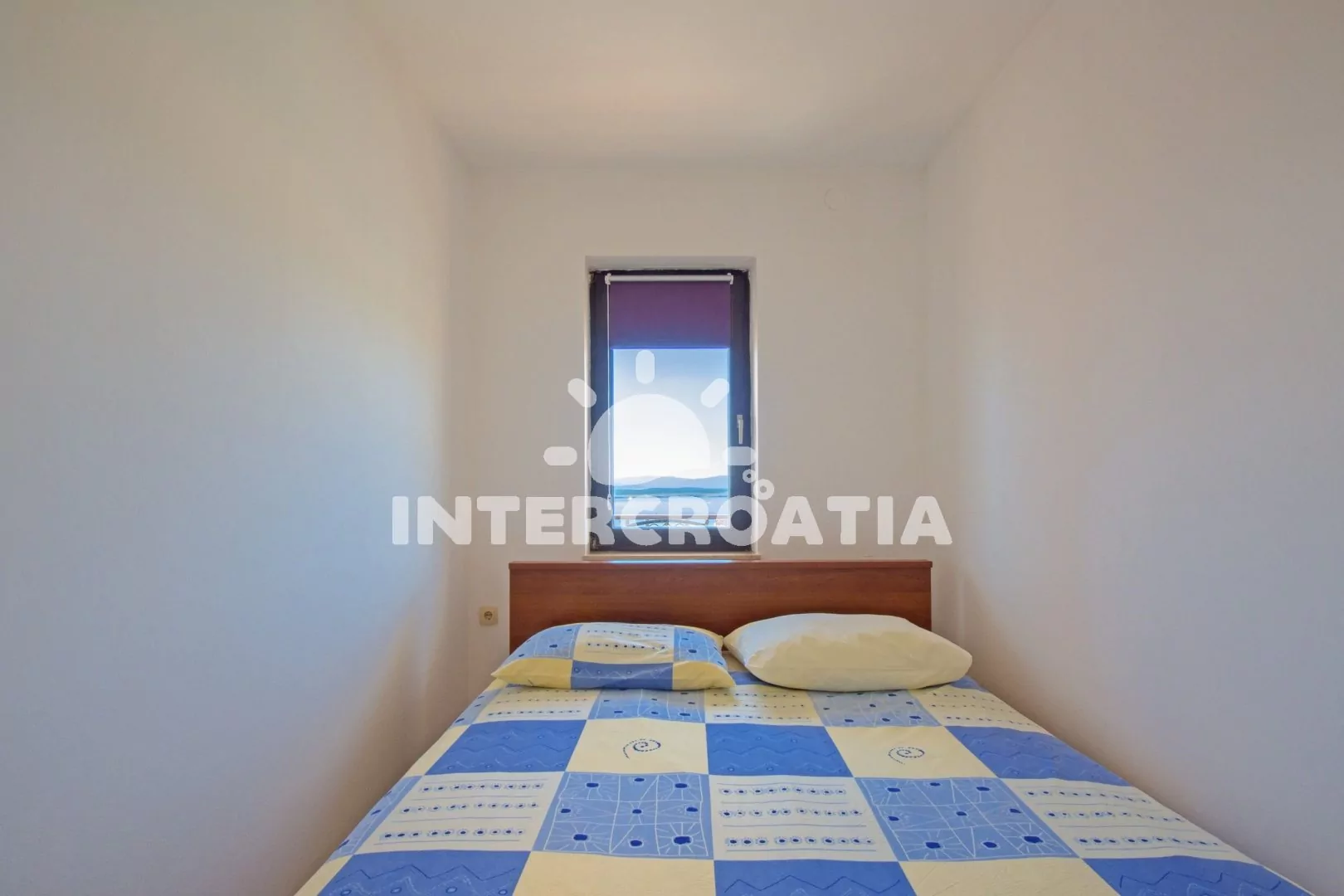 Apartmán (65 m2) s balkonem a výhledem na moře se nachází v 1. patře domu a je vhodný pro 4 osoby. Obývací pokoj je spojený s kuchyní. Kuchyňská linka je vybavena varnou deskou, digestoří, troubou, rychlovarnou konvicí, kávovarem, nádobím a lednicí s mrazákem. Obývací pokoj s jídelním stolem pro 4 osoby, pohovkou, konferenčním stolem, televizí se satelitním programem a klimatizací. První ložnice s dvoulůžkem a vstupem na balkon. Druhá ložnice s dvoulůžkem. Koupelna se sprchovým koutem, umyvadlem a wc. Hostům je k dispozici parkování u objektu zdarma.