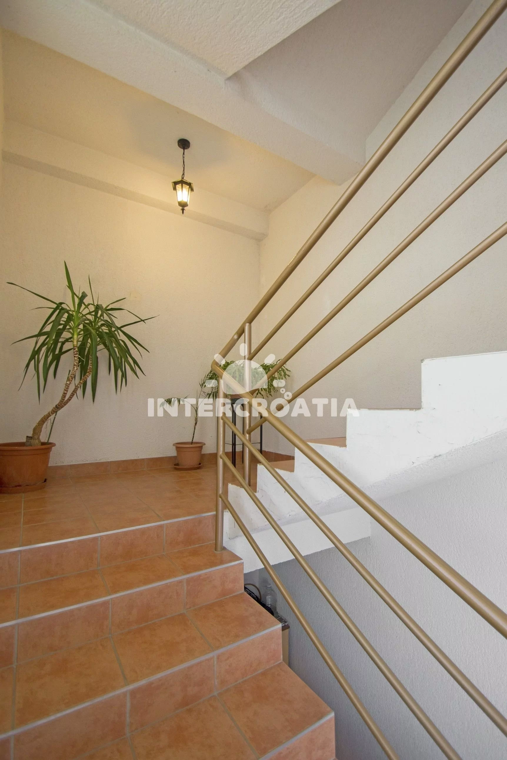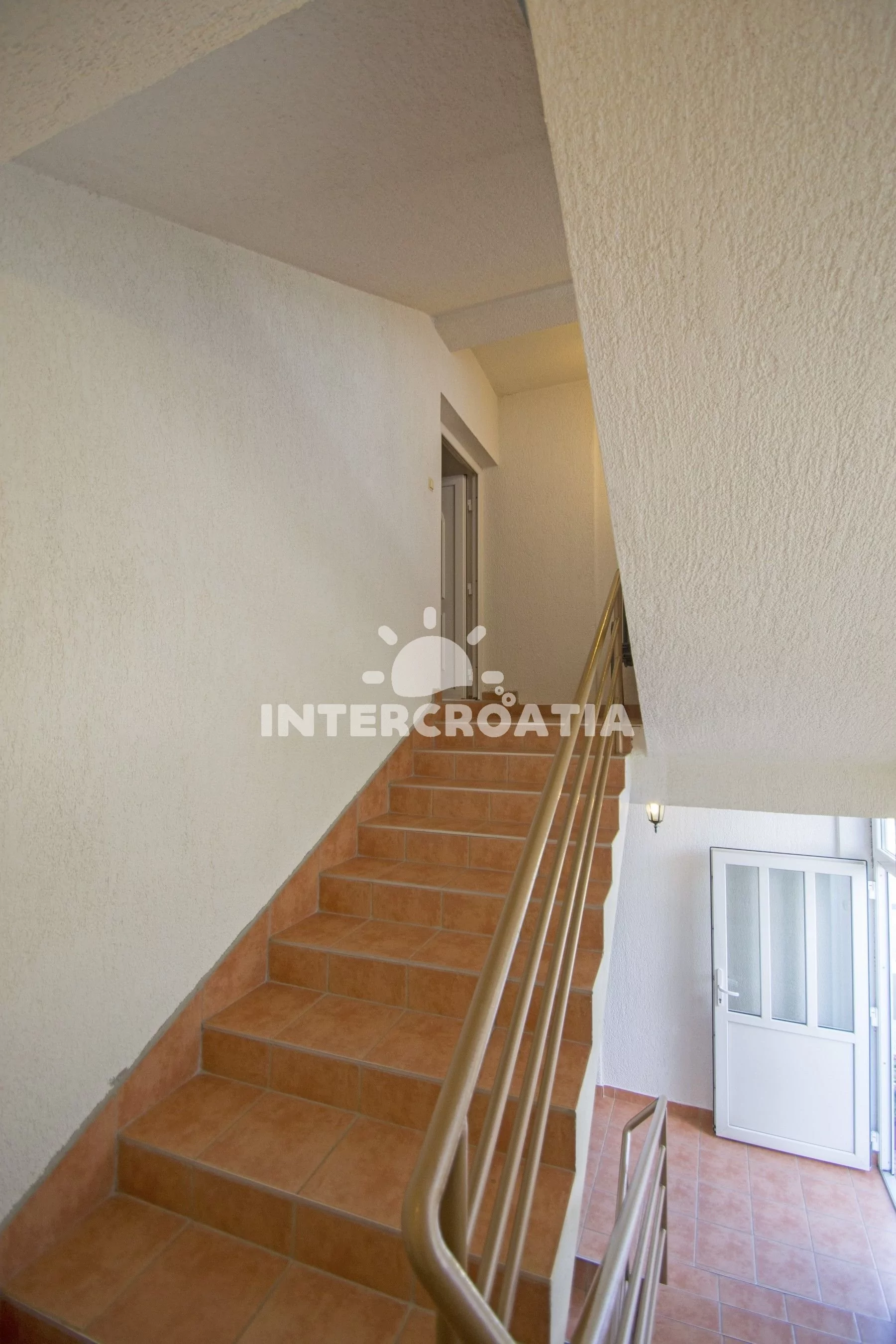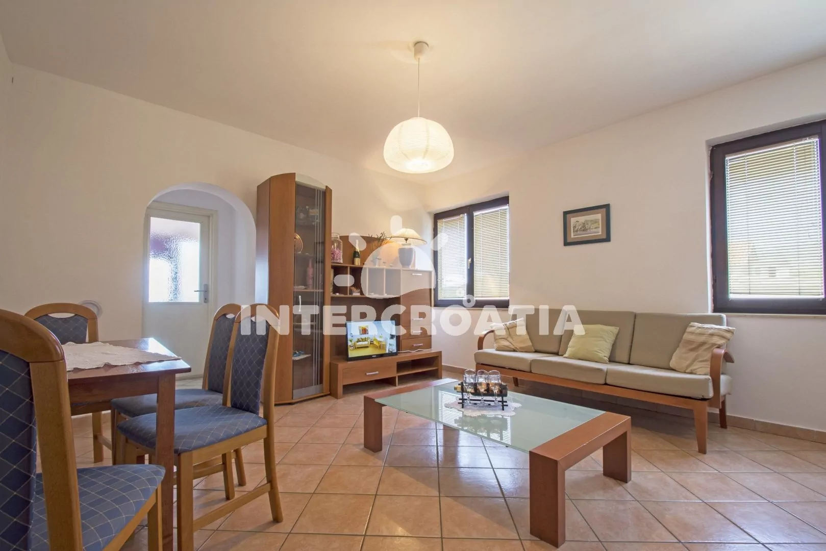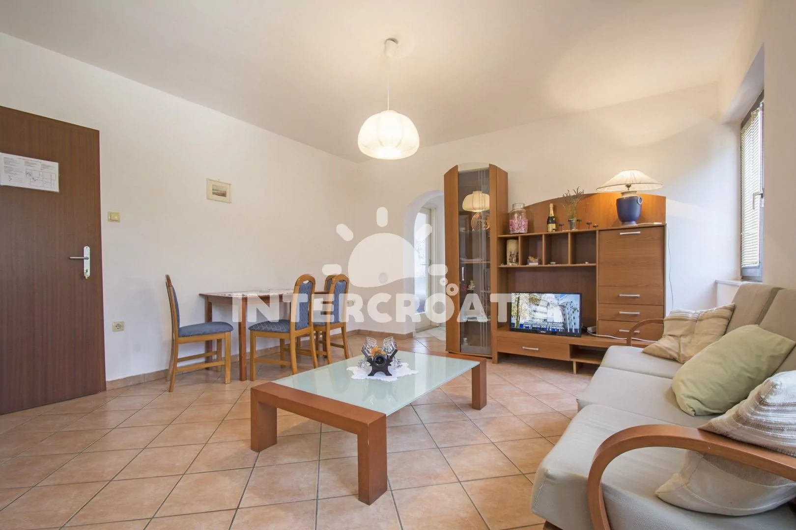 Apartmán (65 m2) s balkonem a výhledem na moře se nachází v 1. patře domu a je vhodný pro 4 osoby. Obývací pokoj je spojený s kuchyní. Kuchyňská linka je vybavena varnou deskou, digestoří, troubou, rychlovarnou konvicí, kávovarem, nádobím a lednicí s mrazákem. Obývací pokoj s jídelním stolem pro 4 osoby, pohovkou, konferenčním stolem, televizí se satelitním programem a klimatizací. První ložnice s dvoulůžkem a vstupem na balkon. Druhá ložnice s dvoulůžkem. Koupelna se sprchovým koutem, umyvadlem a wc. Hostům je k dispozici parkování u objektu zdarma.