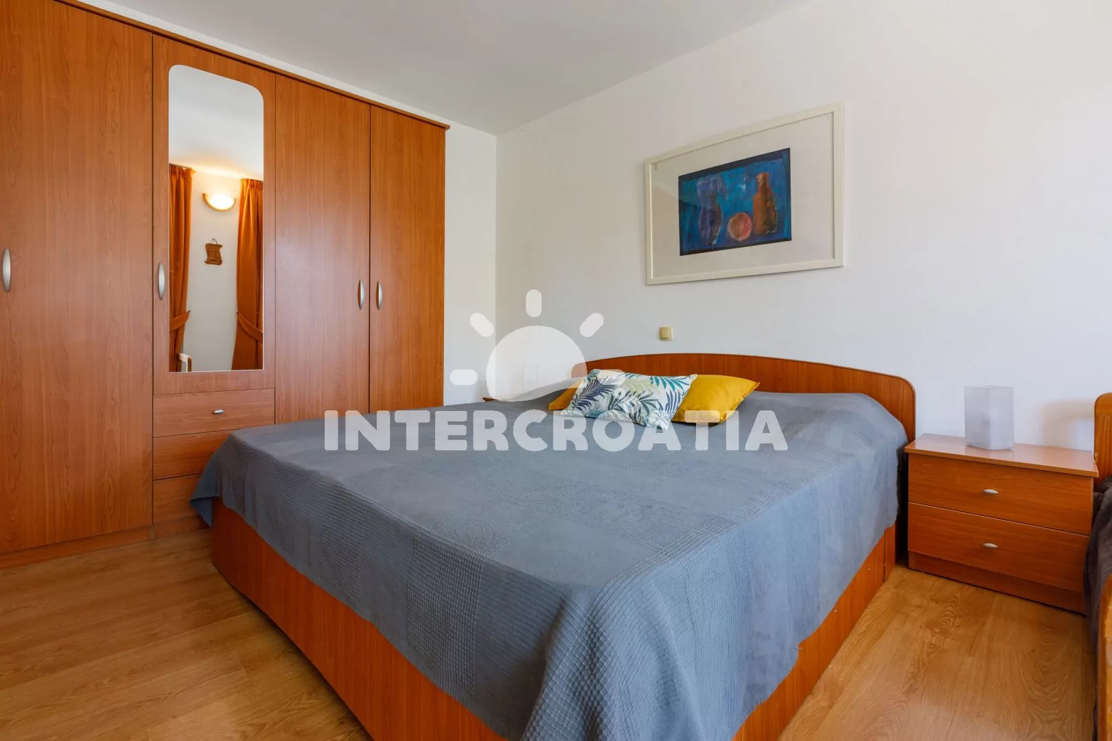 Apartmán (39 m2) s balkonem, výhledem na moře a venkovním posezením se nachází v 1. patře domu. Apartmán je vhodný pro 2 až 4 osoby. Obývací pokoj je spojený s kuchyní. Kuchyňská linka je vybavena dvouplotýnkovým vařičem, rychlovarnou konvicí, kávovarem, mikrovlnnou troubou, toustovačem, nádobím a lednicí s mrazákem. Obývací pokoj s jídelním stolem pro 4 osoby, pohovkou (rozložitelná na extra lůžko pro 1 osobu), klimatizací a vstupem na balkon. Ložnice s dvoulůžkem, jedním jednolůžkem, televizí se satelitním programem a vstupem na balkon. Koupelna se sprchovým koutem, umyvadlem, fénem a wc. Hostům je k dispozici parkování u objektu zdarma.