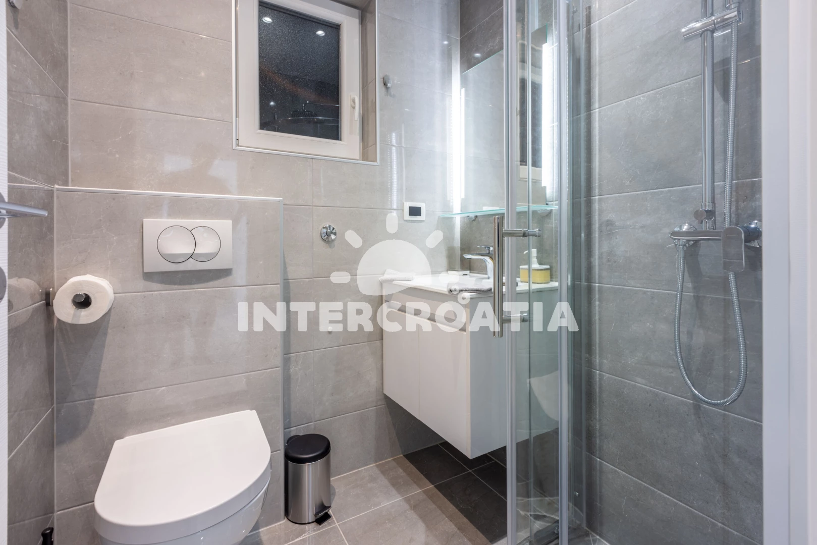 Apartmán (49 m2) s terasou. Nachází se v přízemí objektu. Apartmán má 1 ložnici a je vhodný pro až 2 osoby. Kuchyňská linka je vybavena varnou deskou, toustovačem, troubou, kávovarem, myčkou na nádobí, rychlovarnou konvicí, nádobím, lednicí, mrazákem. V obývací místnosti je rozložitelná pohovka (extra lůžko pro osoby). K dispozici televize se satelitním programem. Ložnice s dvoulůžkem. První koupelna se sprchovým koutem, umyvadlem, fénem a WC. Druhá koupelna se sprchovým koutem, umyvadlem, fénem a WC.