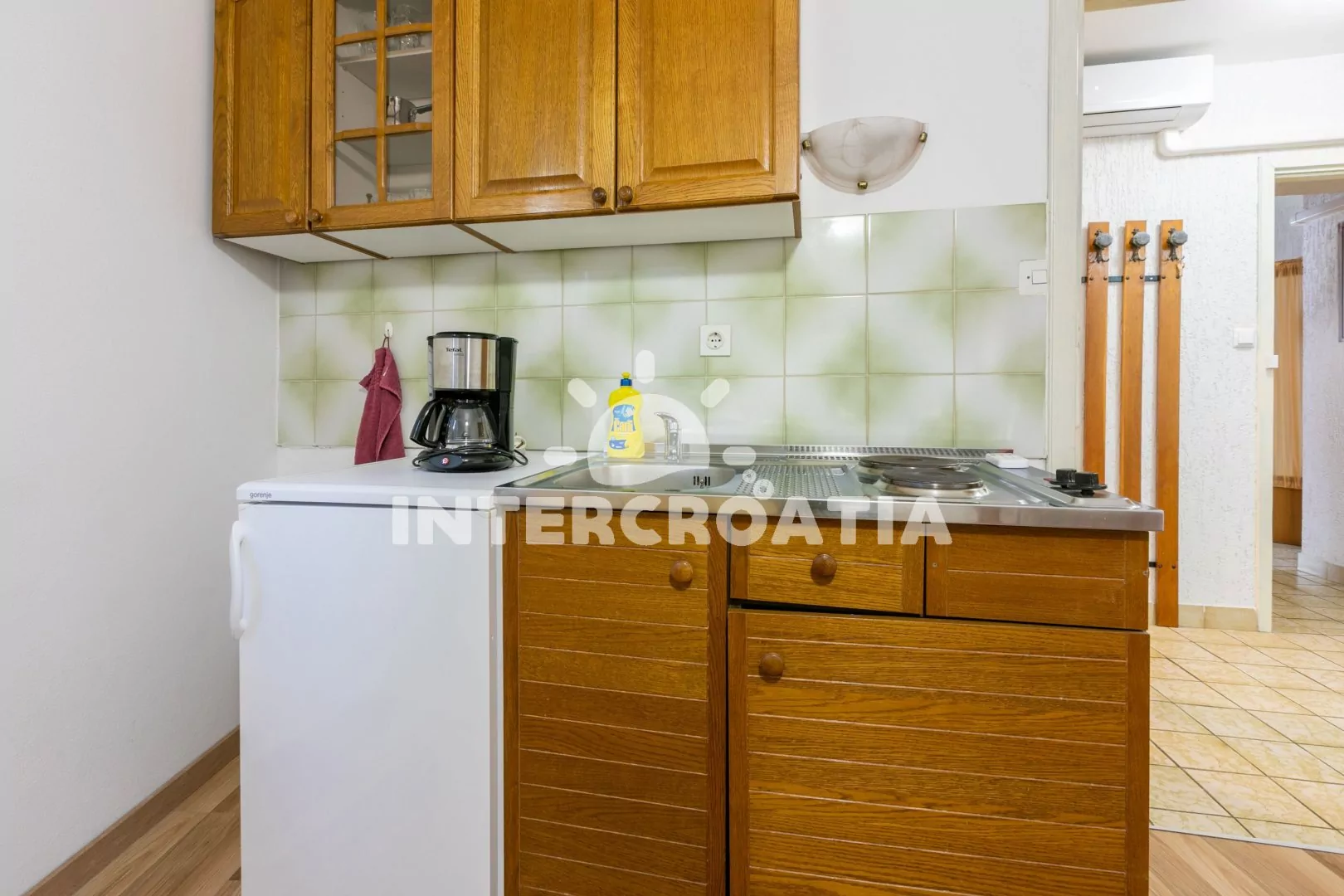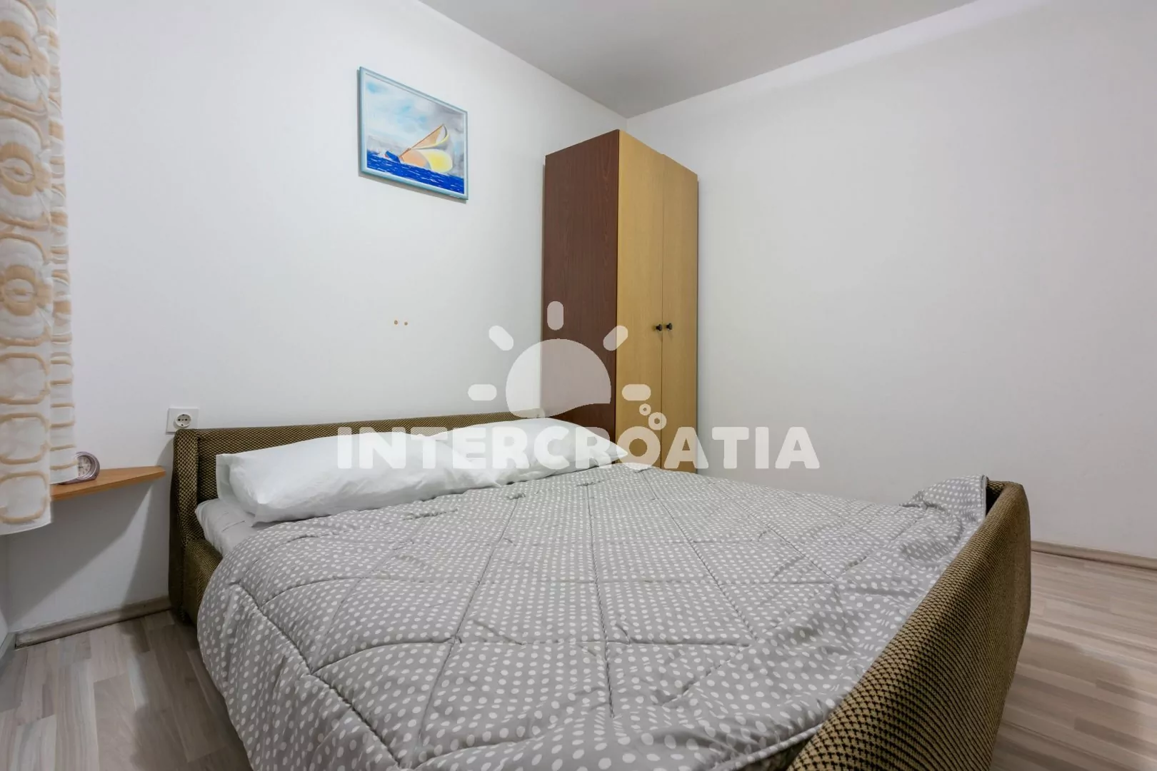 Apartmán (32 m2) nacházející se v 1. patře domu je vhodný pro 2 až 3 osoby. Obývací pokoj je spojený s kuchyní. Kuchyňská linka je vybavena dvouplotýnkovým vařičem, rychlovarnou konvicí, kávovarem, toustovačem, nádobím a lednicí s mrazákem. Obývací pokoj s jídelním stolem pro 4 osoby, pohovkou (rozložitelná na extra lůžko pro 1 osobu) a televizí se satelitním programem. Dále chodba s klimatizací a vstupem do ložnice. Ložnice je vybavena jedním dvoulůžkem a šatní skříní. Koupelna s vanou, umyvadlem, fénem, bidetem a wc.
