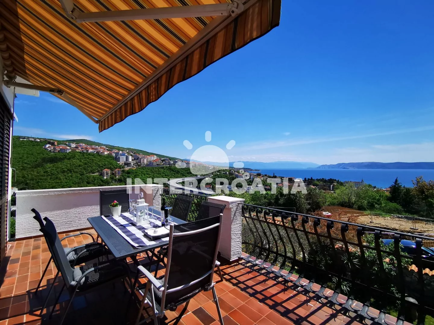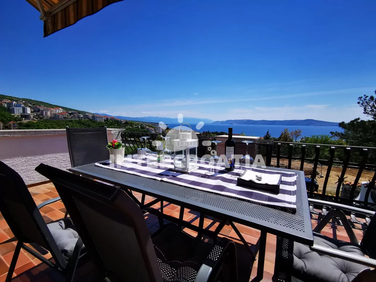 Apartmán (85 m2) s terasou a výhledem na moře se nachází v 1. patře domu. Apartmán má 3 pokoje a je vhodný pro až 6 osob. Kuchyň s jídelním stolem pro 6 osob, kuchyňskou linkou se sklokeramickou…