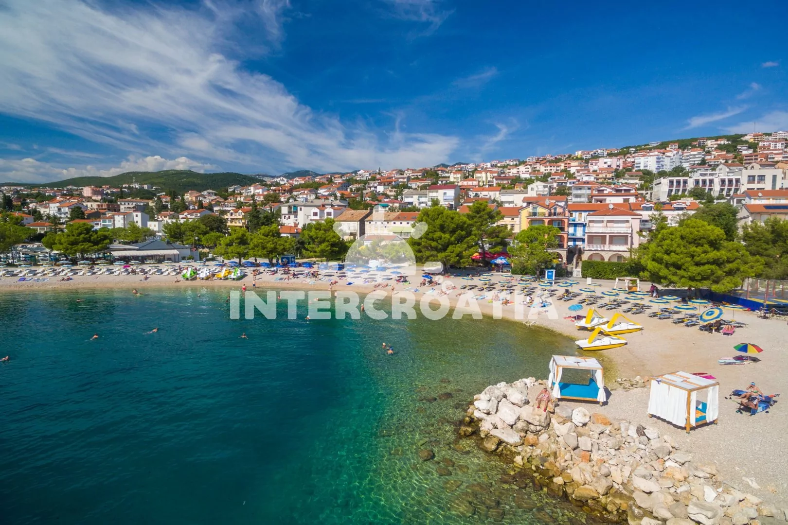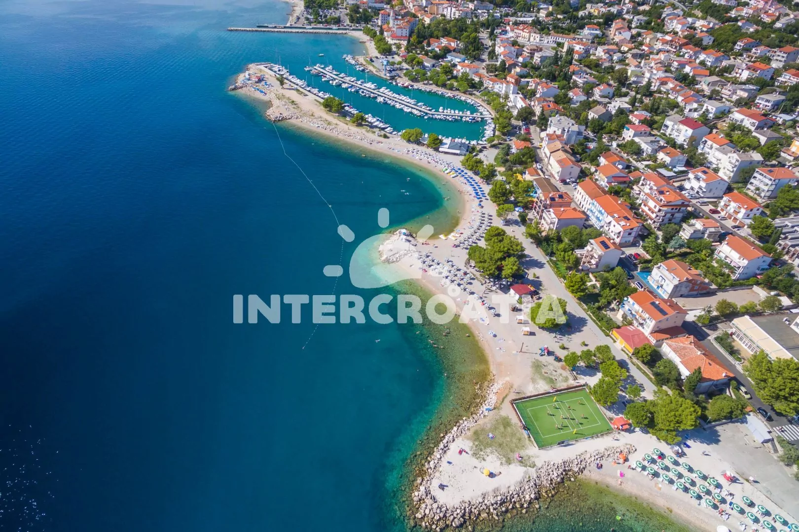 Crikvenica se rozkládá na pobřeží Kvarnerského zálivu. Pěší vzdálenost od apartmánu k průzračně čistému moři a oblázkové pláži je 160 m.