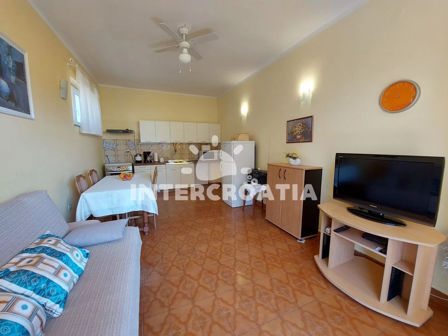 Apartmán (42 m2) s terasou, posezením, částečným výhledem na moře a do dvora se nachází v přízemí domu. Apartmán má 1 ložnici a je vhodný pro 3 až 4 osoby. Obývací pokoj je spojený s kuchyní.…