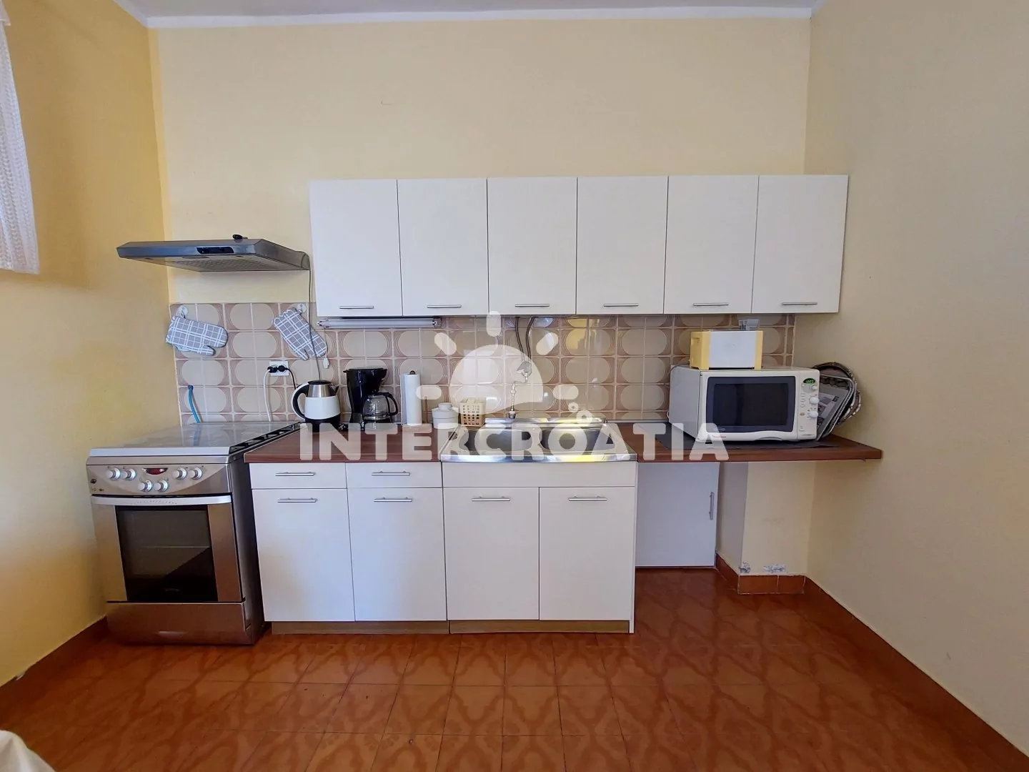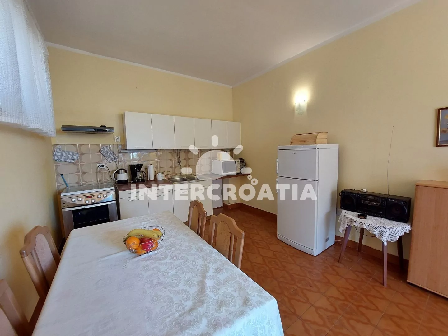 Vzdálenosti: Moře a oblázková pláž 160 m, centrum 800 m, supermarket, restaurace, bar 100 m, čerpací stanice, směnárna 300 m, lékárna, ambulance, banka, pošta, muzeum, diskotéka, půjčovna kol 800 m, potápění, minigolf, tenis 1,5 km, letiště (Rijeka) 25 km.