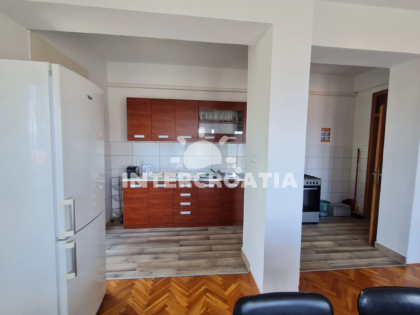 Apartmán (90 m2) s terasou, posezením a výhledem na moře se nachází ve 2. patře domu. Apartmán má 3 ložnice, 2 koupelny a je vhodný pro až 6 osob. Obývací pokoj je spojený s kuchyní. Kuchyňská linka…
