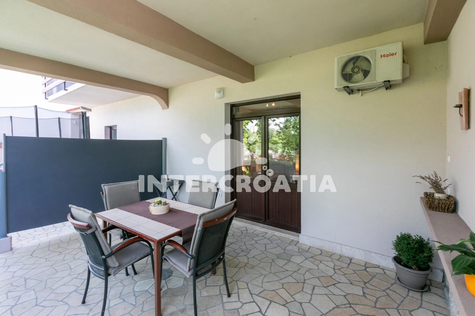 Apartmán se nachází 900 m od moře a pláže. Pláž je písčitá, oblázková a skalnatá. Apartmán disponuje bazénem s lehátky pro ubytované hosty. U objektu je k dispozici společná zahrada s posezením a grilem. Parkování je před domem.