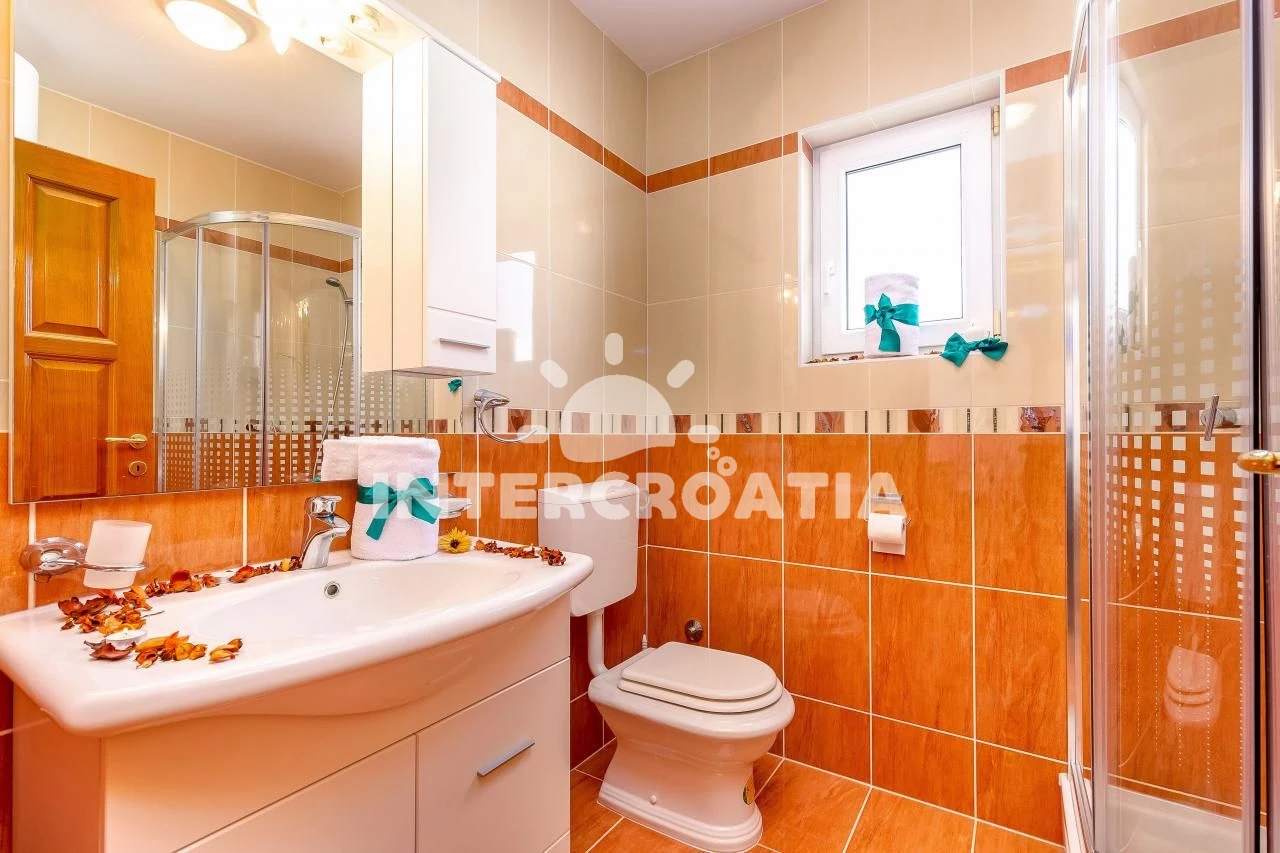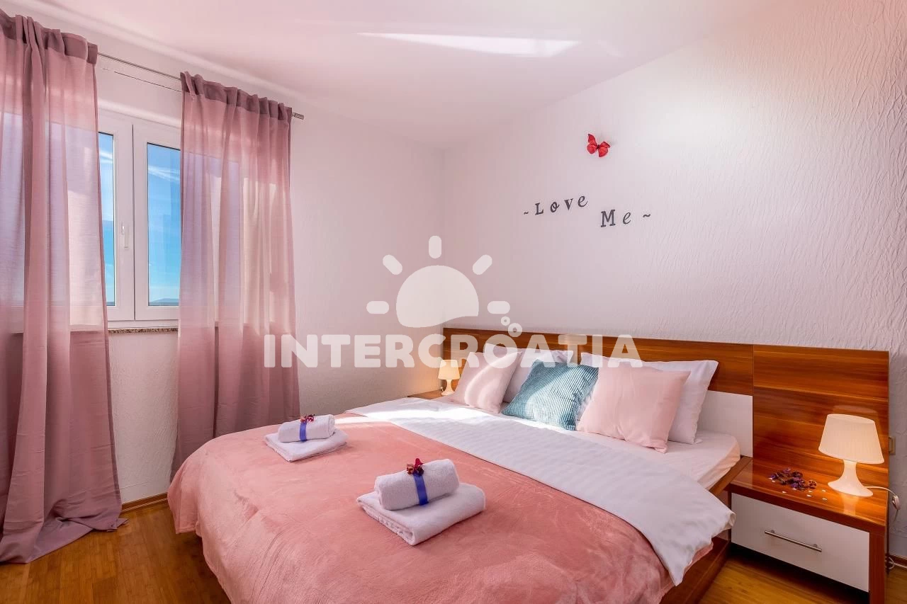 Apartmán se nachází 70 m od moře a pláže. Pláž je oblázková a betonové desky. Apartmán disponuje bazénem s lehátky pro ubytované hosty. K dispozici vířivka. Parkování je před domem.