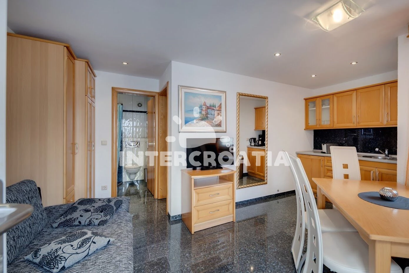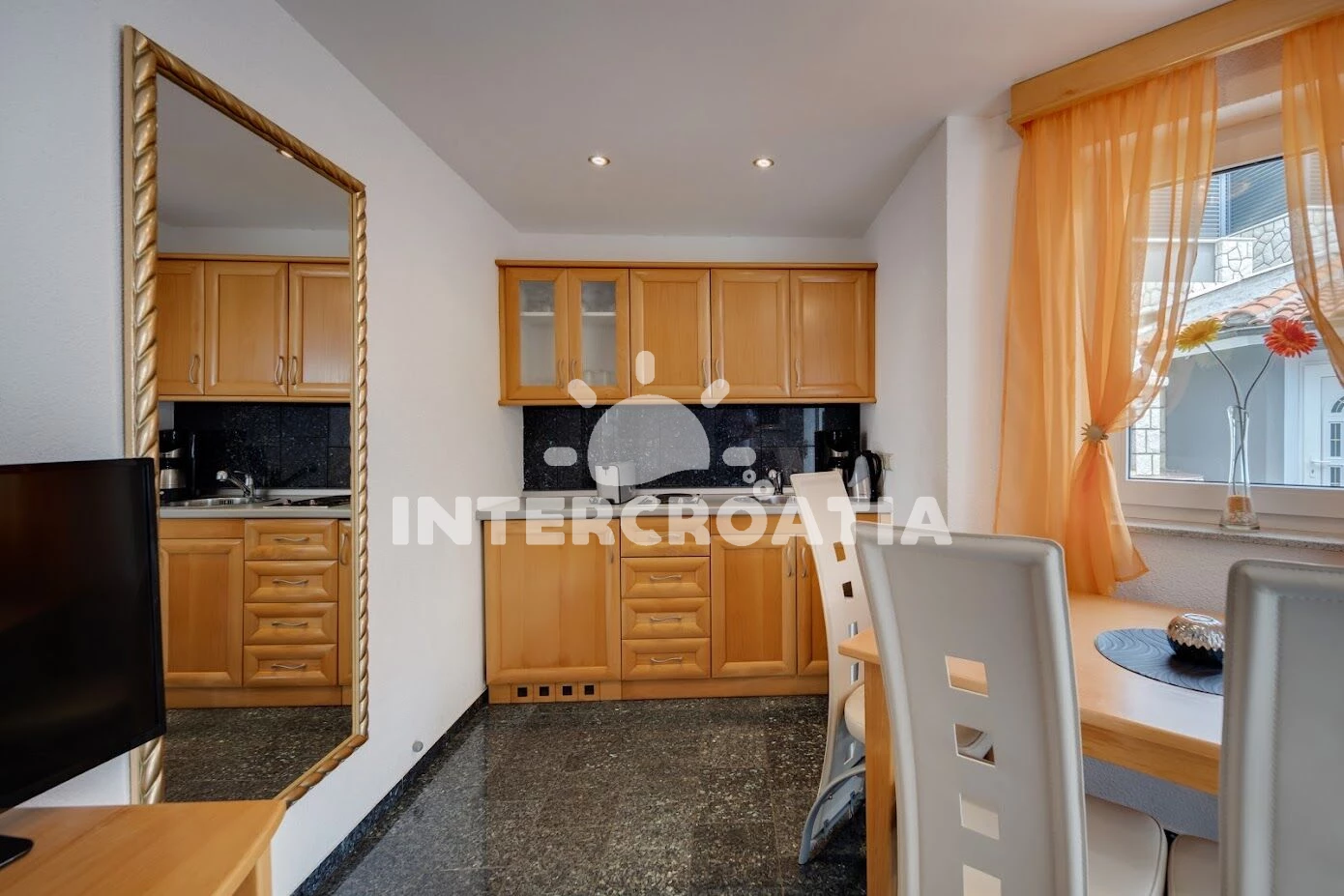 Vzdálenosti: Moře 1,1 km, pláž 1,2 km (skalnatá, oblázková a betonové desky), supermarket 500 m, čerpací stanice 900 m, směnárna 1 km, půjčovna kol 1,4 km, centrum 1,5 km, lékárna 1,5 km, ambulance 1,5 km, banka 1,5 km, pošta 1,5 km, restaurace 1,5 km, muzeum 1,5 km, bar 1,5 km, letiště (Rijeka) 30 km,