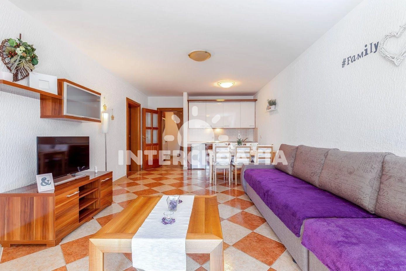 Vzdálenosti: Moře 60 m, pláž 70 m (oblázková a betonové desky), supermarket 5 m, bar 10 m, restaurace 70 m, potápění 200 m, směnárna 250 m, centrum 1,2 km, diskotéka 1,2 km, lékárna 1,2 km, ambulance 1,2 km, muzeum 1,2 km, banka 1,4 km, pošta 1,6 km,
