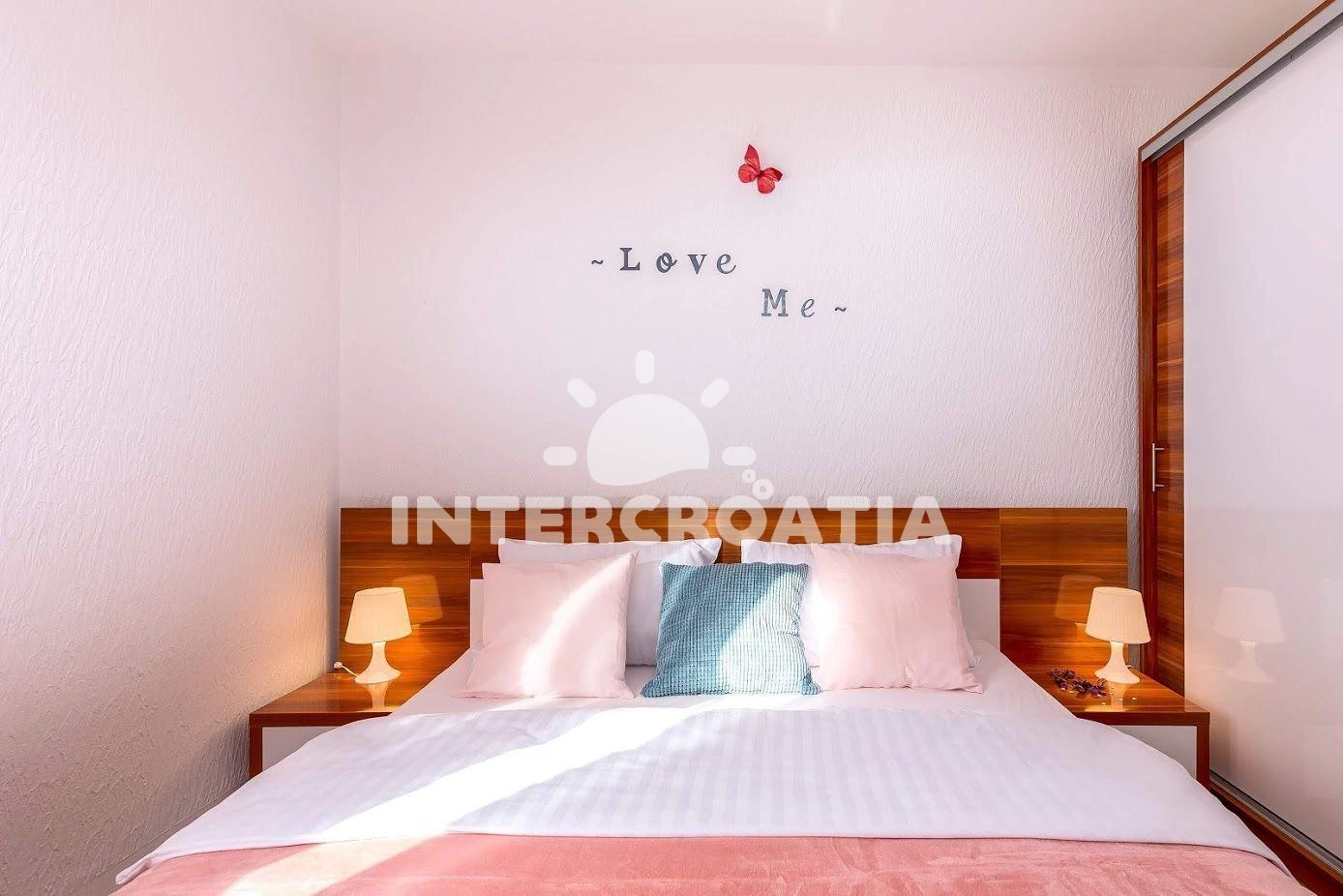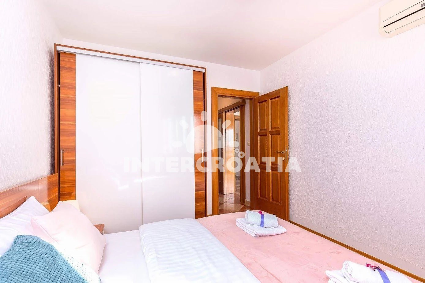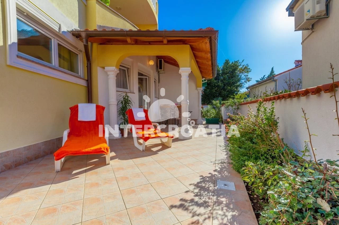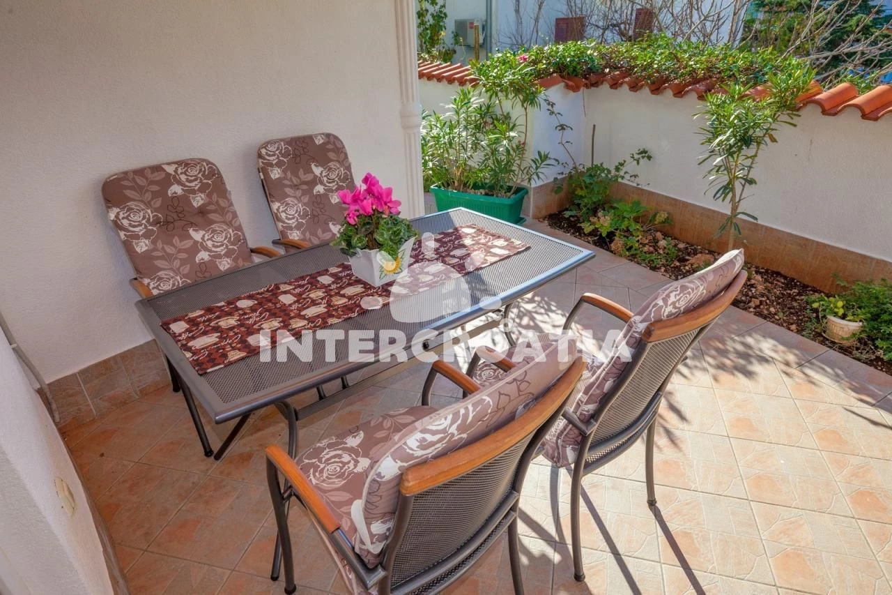 Apartmán se nachází 70 m od moře a pláže. Pláž je oblázková a betonové desky. Apartmán disponuje bazénem s lehátky pro ubytované hosty. K dispozici vířivka. Parkování je před domem.