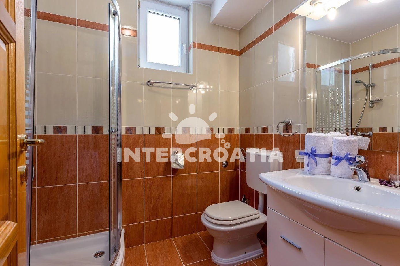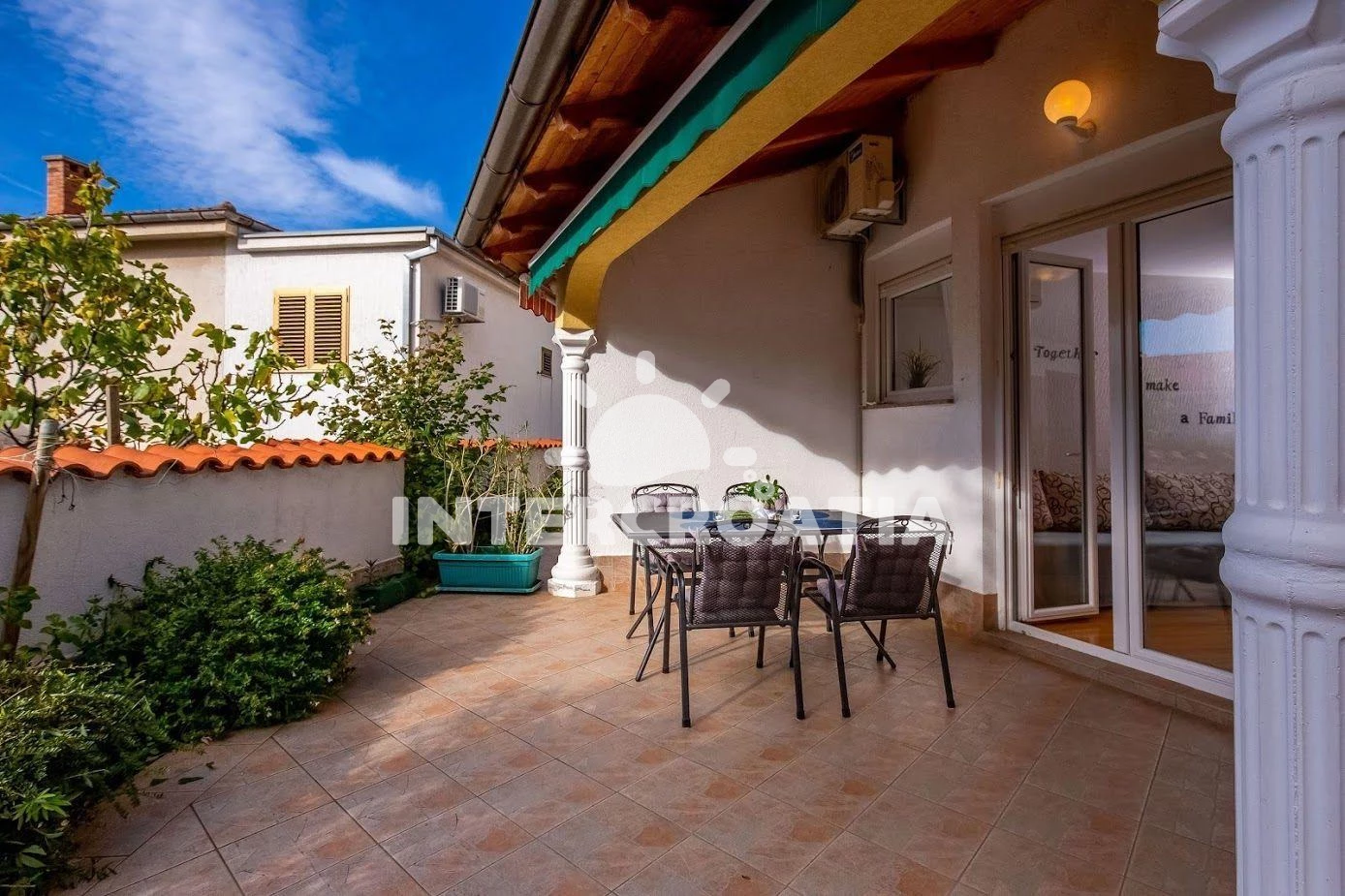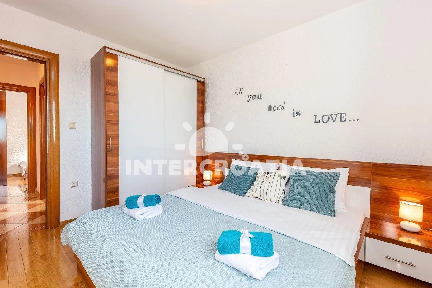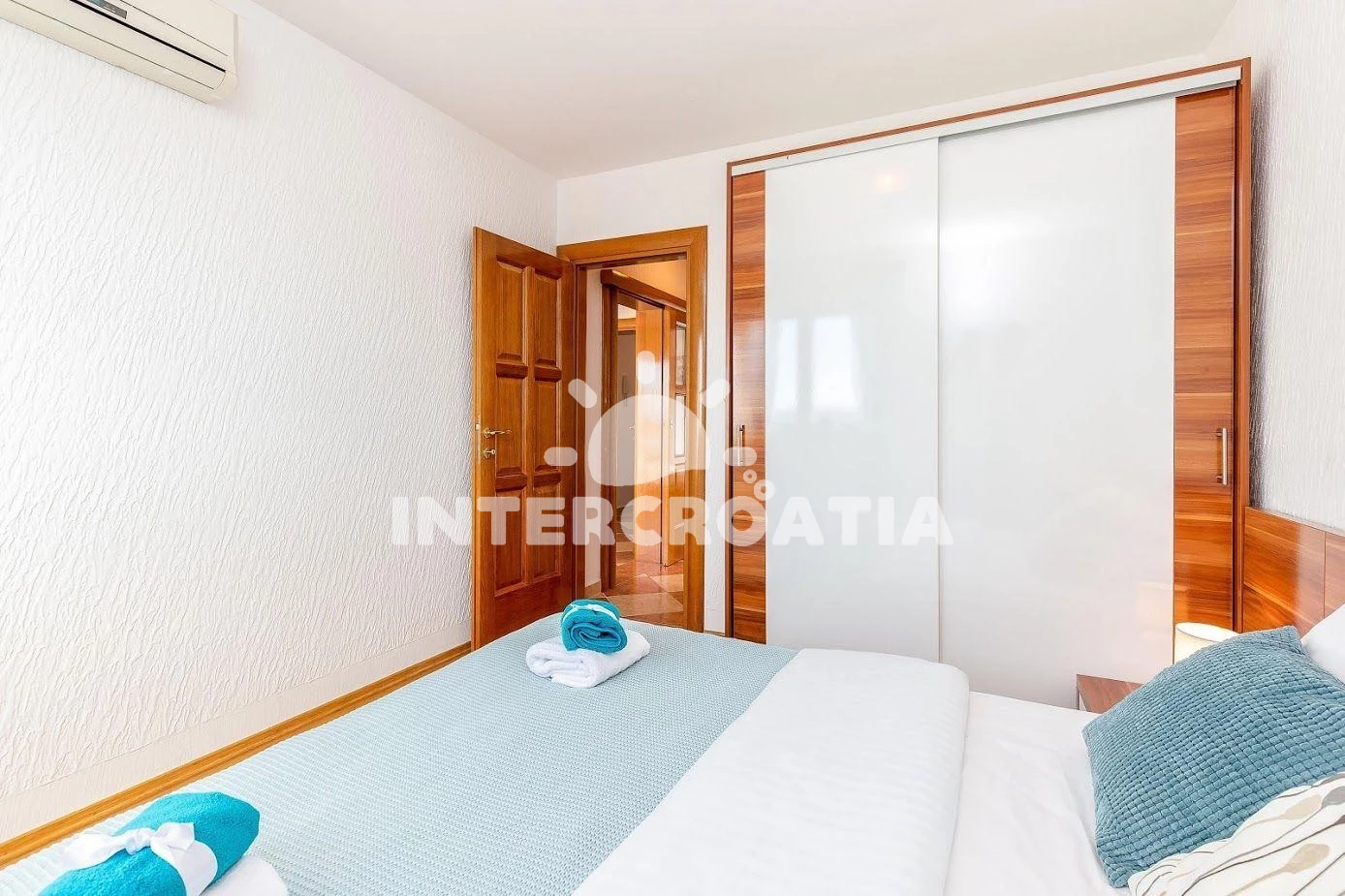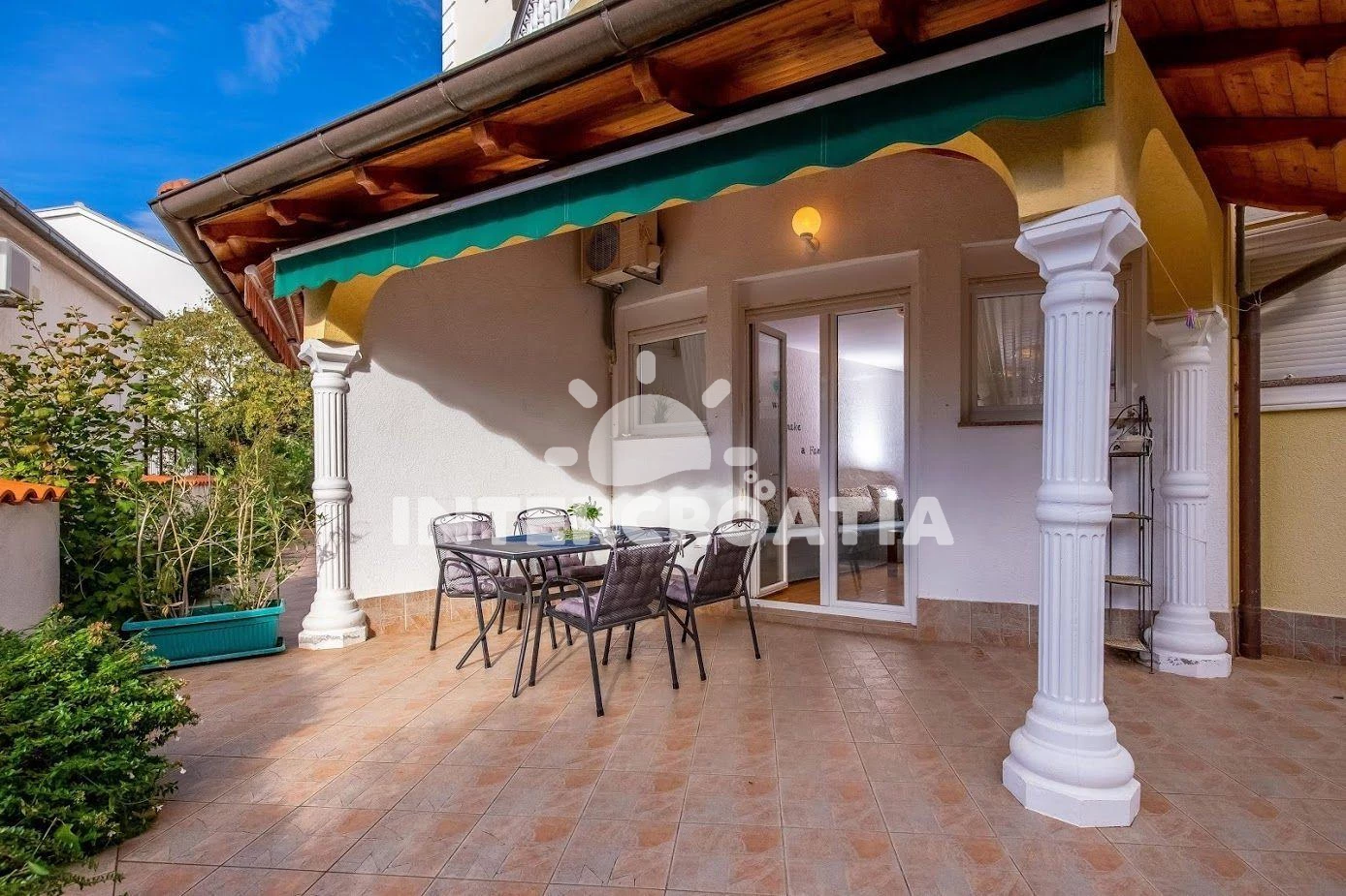 Apartmán se nachází 70 m od moře a pláže. Pláž je oblázková a betonové desky. Apartmán disponuje bazénem s lehátky pro ubytované hosty. K dispozici vířivka. Parkování je před domem.