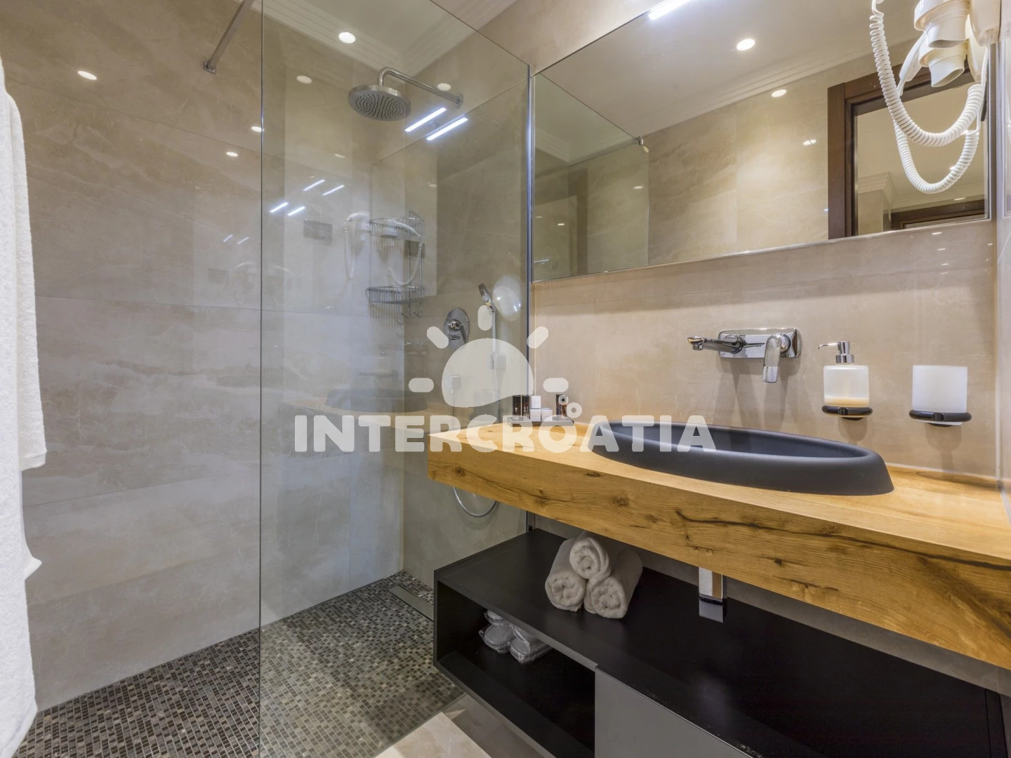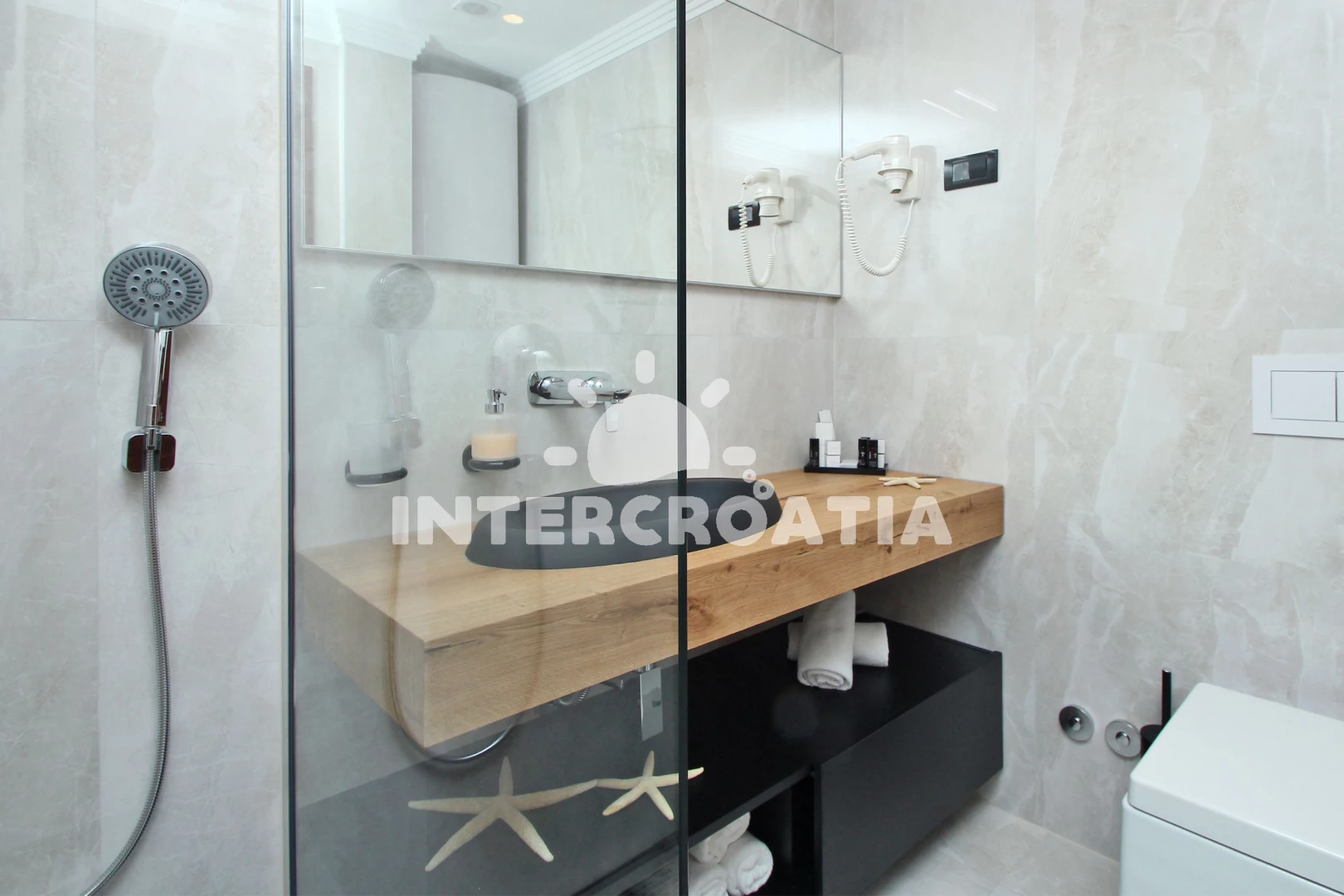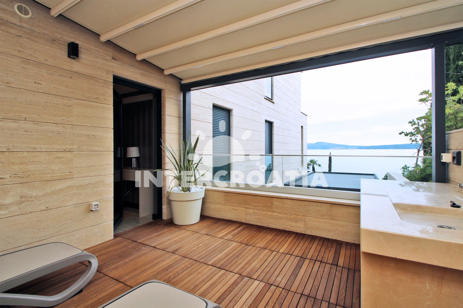 Vzdálenosti: Moře 10 m, pláž 15 m (skalnatá a oblázková), restaurace 200 m, bar 200 m, supermarket 400 m, směnárna 500 m, centrum 700 m, banka 700 m, pošta 700 m, půjčovna kol 750 m, lékárna 800 m, diskotéka 800 m, muzeum 800 m, potápění 900 m, čerpací stanice 1 km, ambulance 1,1 km, tenisové kurty 2,5 km, letiště (Rijeka) 25 km,