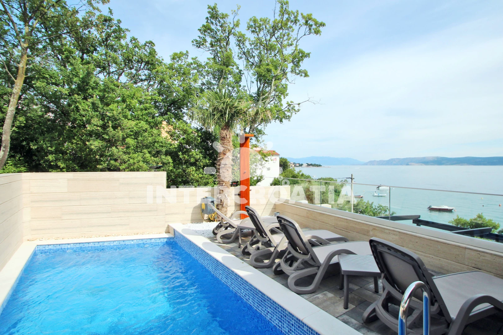 Vzdálenosti: Moře 10 m, pláž 15 m (skalnatá a oblázková), bar 200 m, restaurace 200 m, supermarket 400 m, směnárna 500 m, centrum 700 m, banka 700 m, pošta 700 m, půjčovna kol 750 m, diskotéka 800 m, muzeum 800 m, lékárna 800 m, potápění 900 m, čerpací stanice 1 km, ambulance 1,1 km, tenisové kurty 2,5 km, marina 10 km, letiště (Rijeka) 25 km,