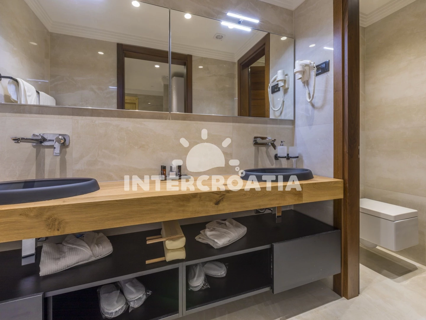 Apartmán (76 m2) s terasou, s balkonem. Nachází se ve 2. patře objektu. Apartmán má 2 ložnice a je vhodný pro až 4 osoby. Kuchyňská linka je vybavena varnou deskou, kávovarem, troubou, toustovačem, myčkou na nádobí, mikrovlnnou troubou, rychlovarnou konvicí, nádobím, lednicí, mrazákem. K dispozici televize se satelitním programem, sejf, radio, žehlička. První ložnice s dvoulůžkem. Druhá ložnice s dvoulůžkem. Koupelna se sprchovým koutem, umyvadlem, fénem a WC.