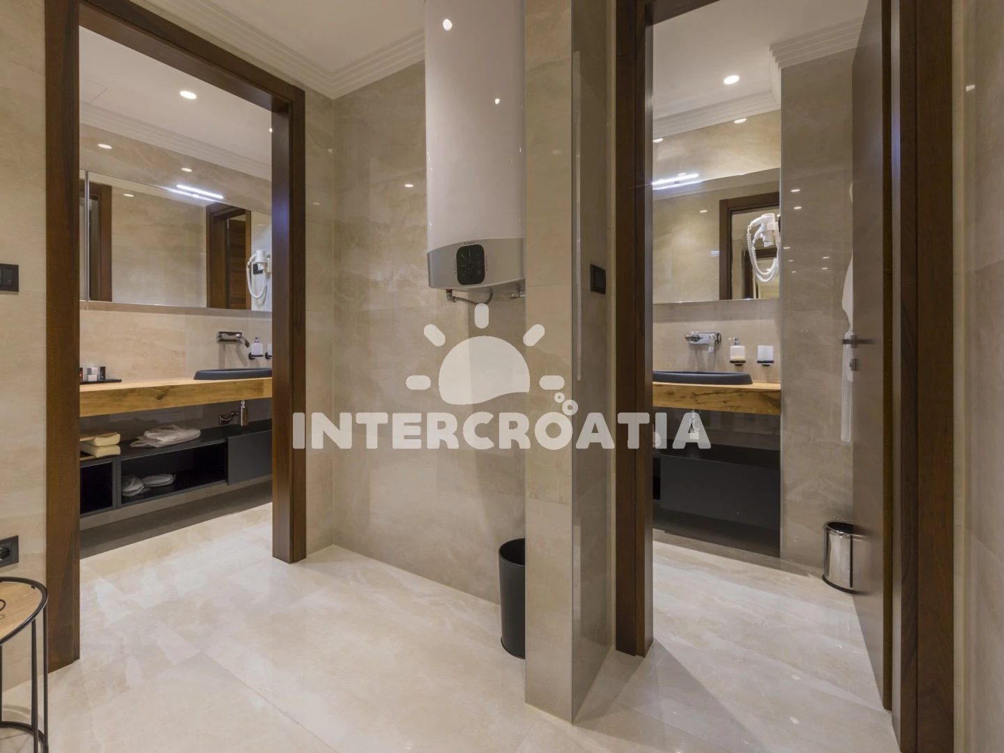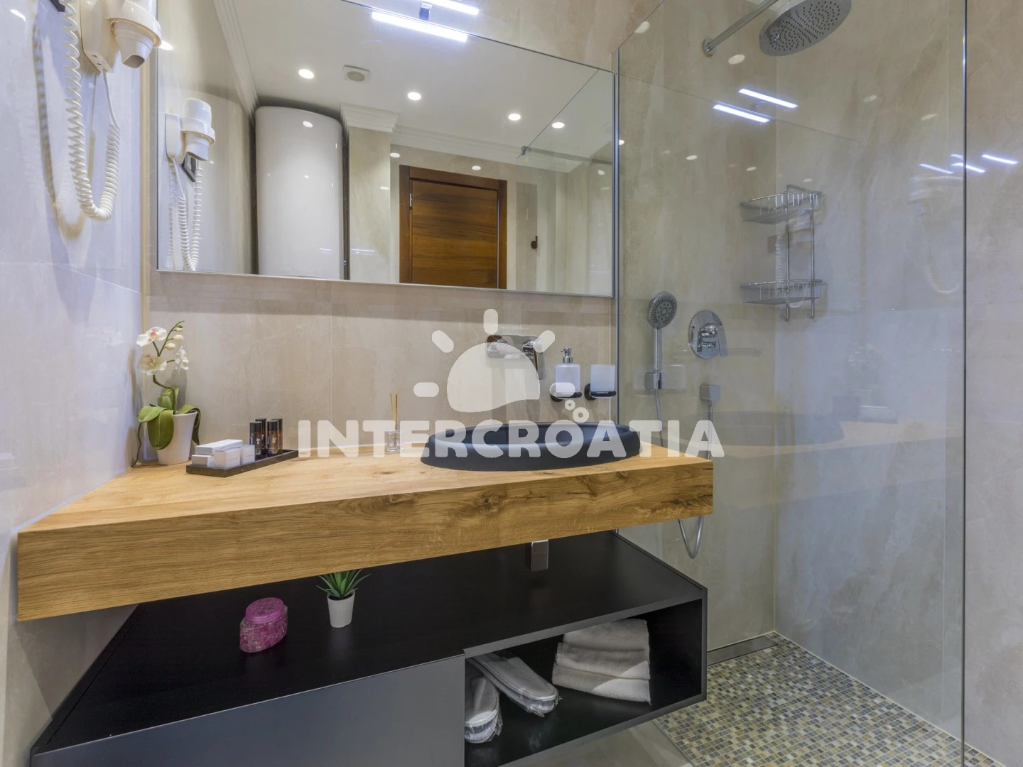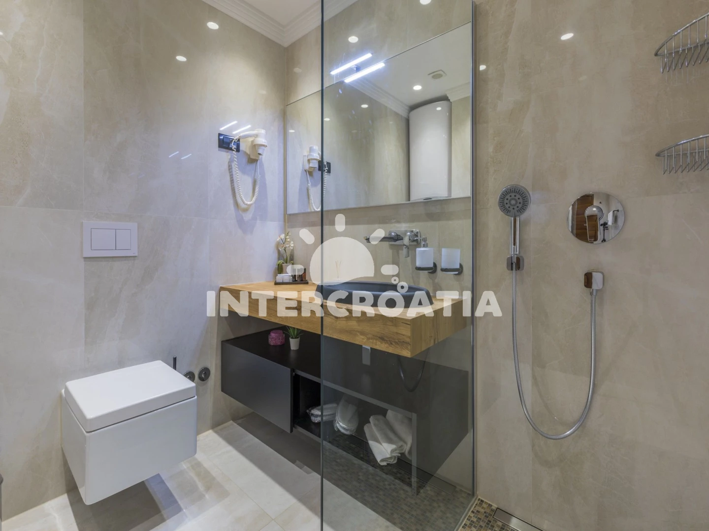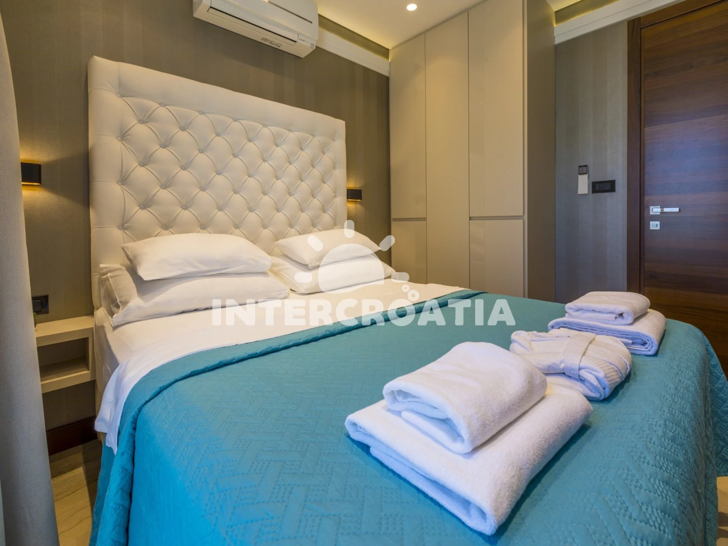 Apartmán se nachází 15 m od moře a pláže. Pláž je skalnatá a oblázková. Apartmán disponuje bazénem s lehátky pro ubytované hosty. K dispozici vířivka, posilovna, sauna. U objektu je k dispozici společná zahrada s posezením a grilem.