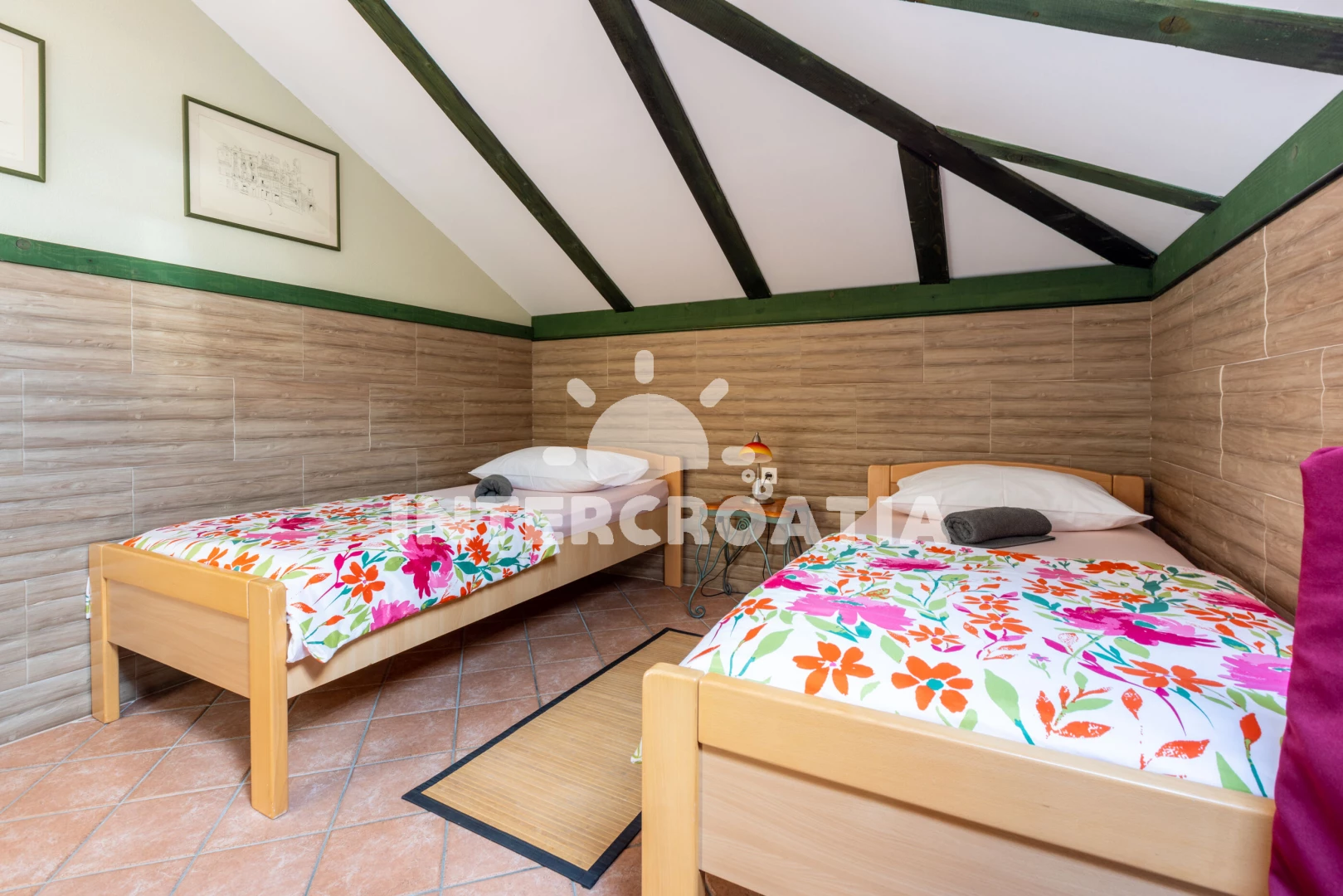 Vzdálenosti: pláž 40 m (písek), potápění 10 m, směnárna 30 m, diskotéka 40 m, bar 50 m, restaurace 50 m, supermarket 60 m, centrum 700 m, banka 800 m, letiště (Rijeka) 20 km,