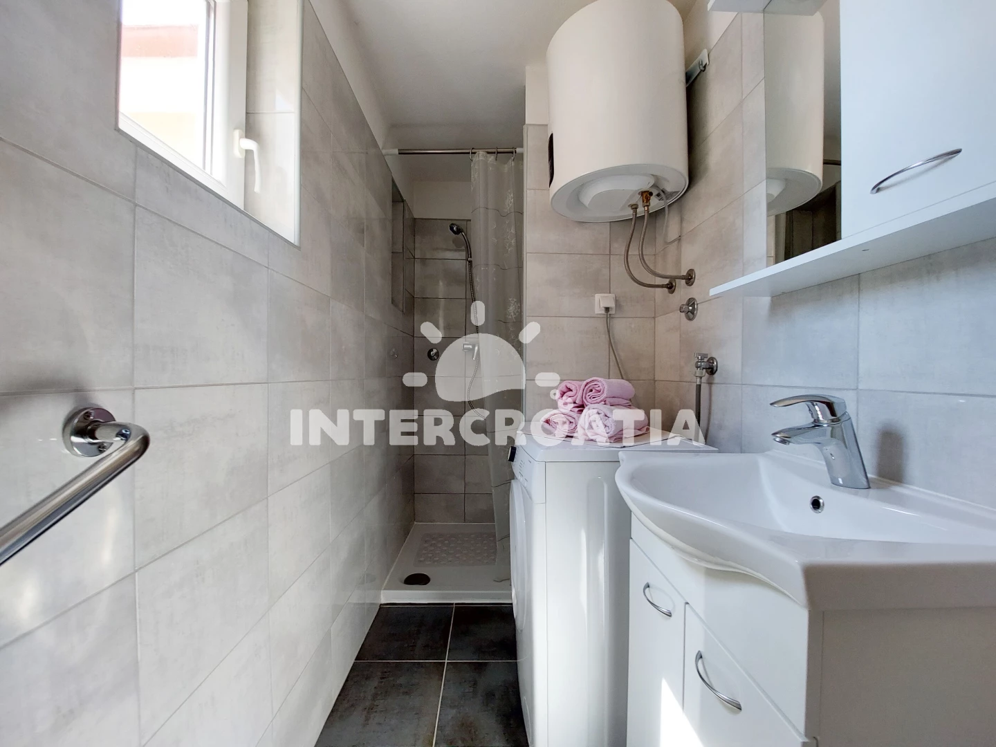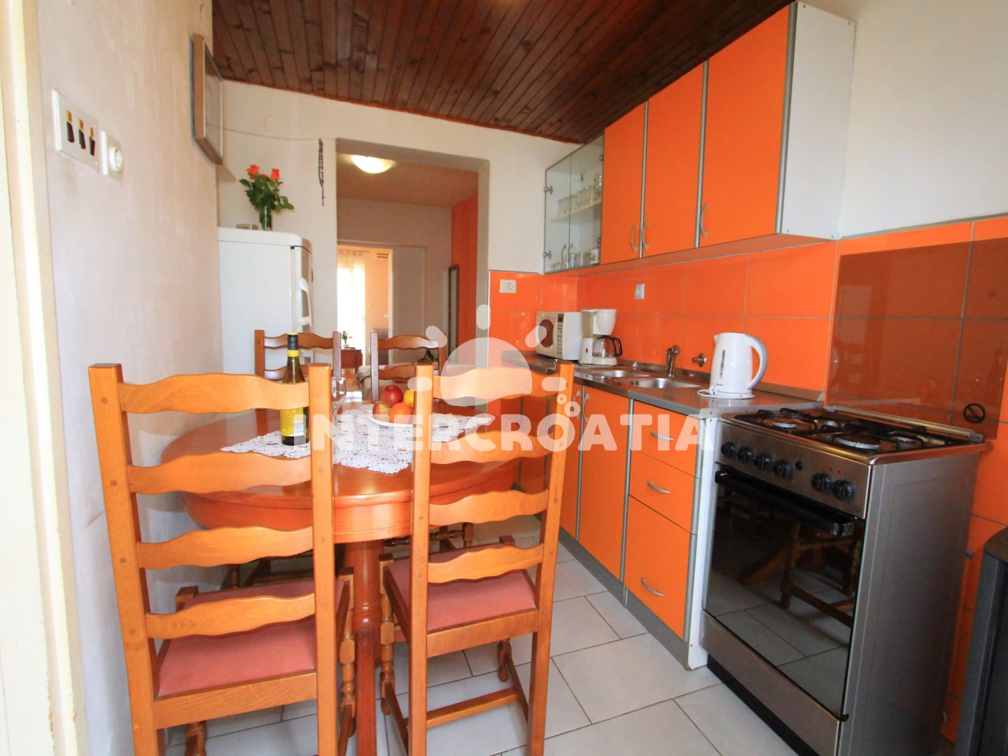 Vzdálenosti: pláž 300 m (oblázková a větší kamení), supermarket 100 m, restaurace 100 m, centrum 300 m, banka 400 m, veřejná doprava 400 m, lékárna 400 m, pošta 400 m, diskotéka 400 m, čerpací stanice 700 m, ambulance 800 m, letiště (Rijeka) 30 km,