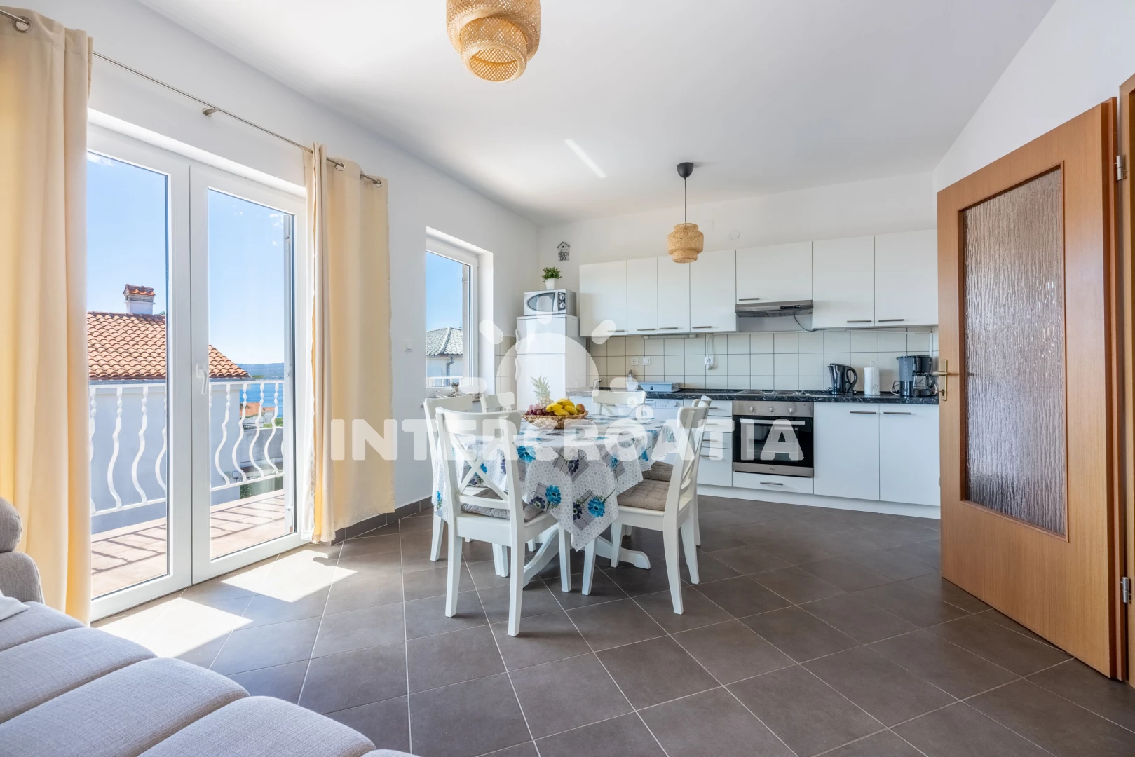Vzdálenosti: Moře 600 m, pláž 600 m (oblázková a betonové desky), supermarket 150 m, centrum 500 m, restaurace 500 m, banka 550 m, pošta 550 m, diskotéka 550 m, letiště (Rijeka) 19 km,