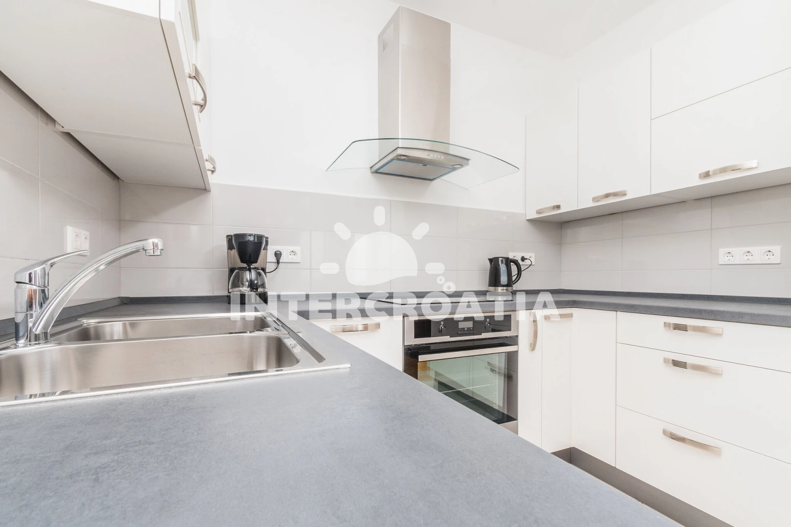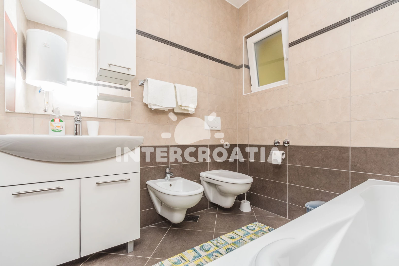 5-10 minuta pješice do plaže koja ima puno sadržaja za djecu, restorane...do centra grada 15-tak minuta hoda...