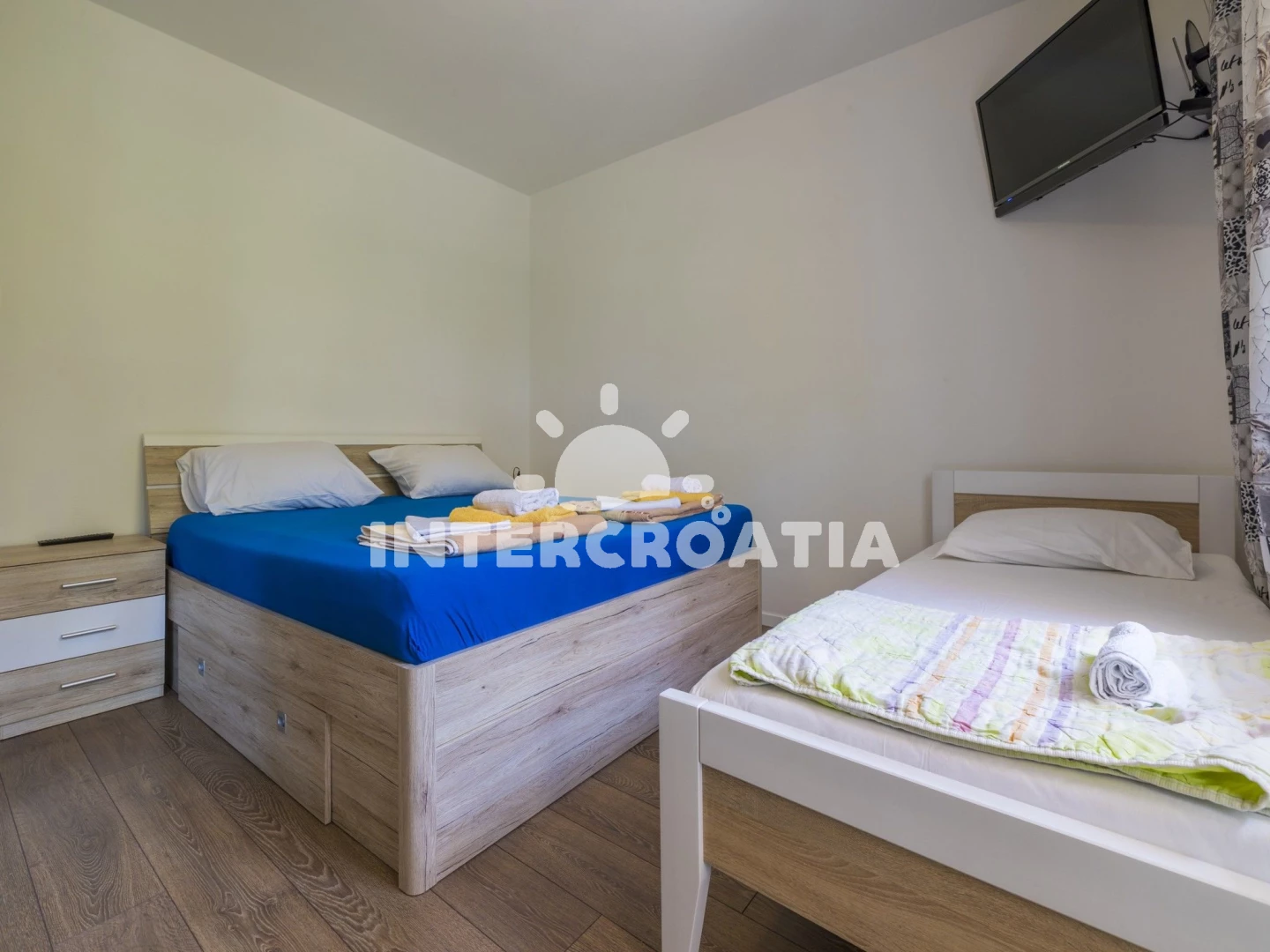 Vzdálenosti: Moře 150 m, pláž 150 m (písek), směnárna 50 m, supermarket 80 m, restaurace 100 m, mini golf 150 m, bar 150 m, centrum 700 m, lékárna 700 m, ambulance 700 m, tenisové kurty 700 m, banka 700 m, pošta 700 m, diskotéka 700 m, letiště (Rijeka) 25 km,