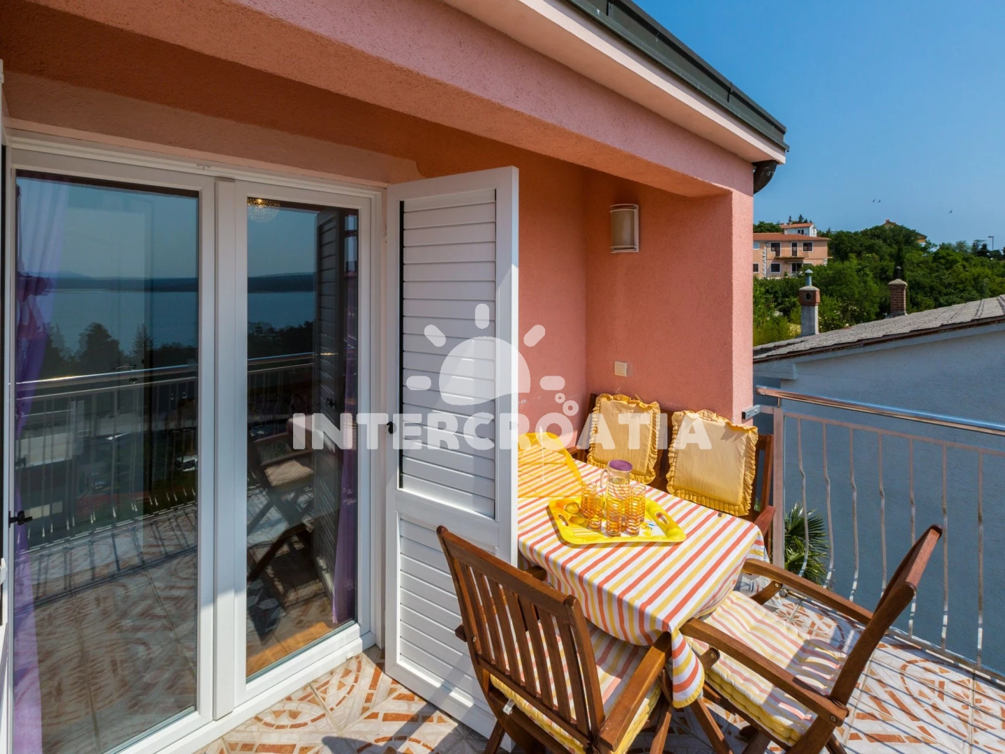 Vzdálenosti: Moře 200 m, pláž 200 m (písek), supermarket 200 m, směnárna 200 m, restaurace 200 m, centrum 600 m, diskotéka 600 m, banka 650 m, letiště (Rijeka) 25 km,
