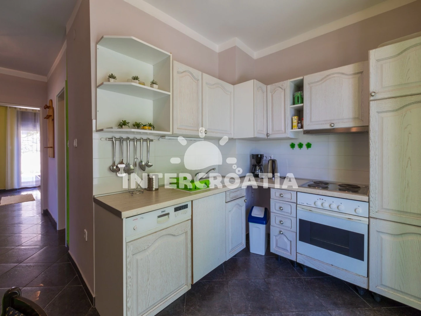 Apartmán se nachází 140 m od moře a pláže. Pláž je skalnatá, oblázková, větší kamení a betonové desky. Parkování je 150m - 300 m od domu.