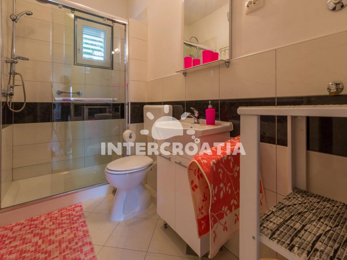 Zum Sand Strand sind es ca 5 Minuten runter und ca 7 Minuten hoch. Einkaufscenter ( Lidl+ Konzum ) 2 Minuten mit dem Auto entfernt